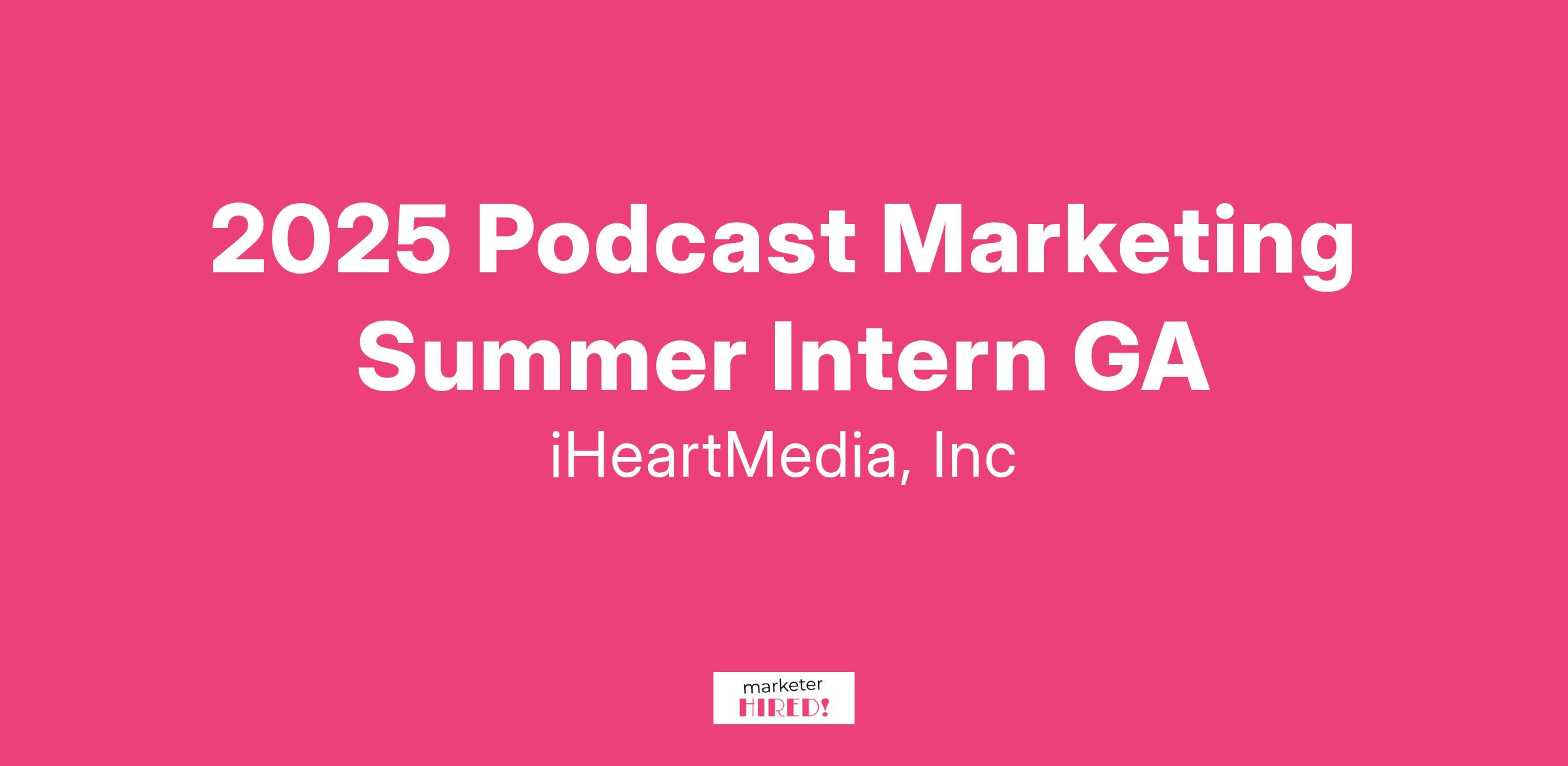 Responsibilities:Assist in developing and executing marketing strategies to launch podcasts and drive visibility and audience engagement.