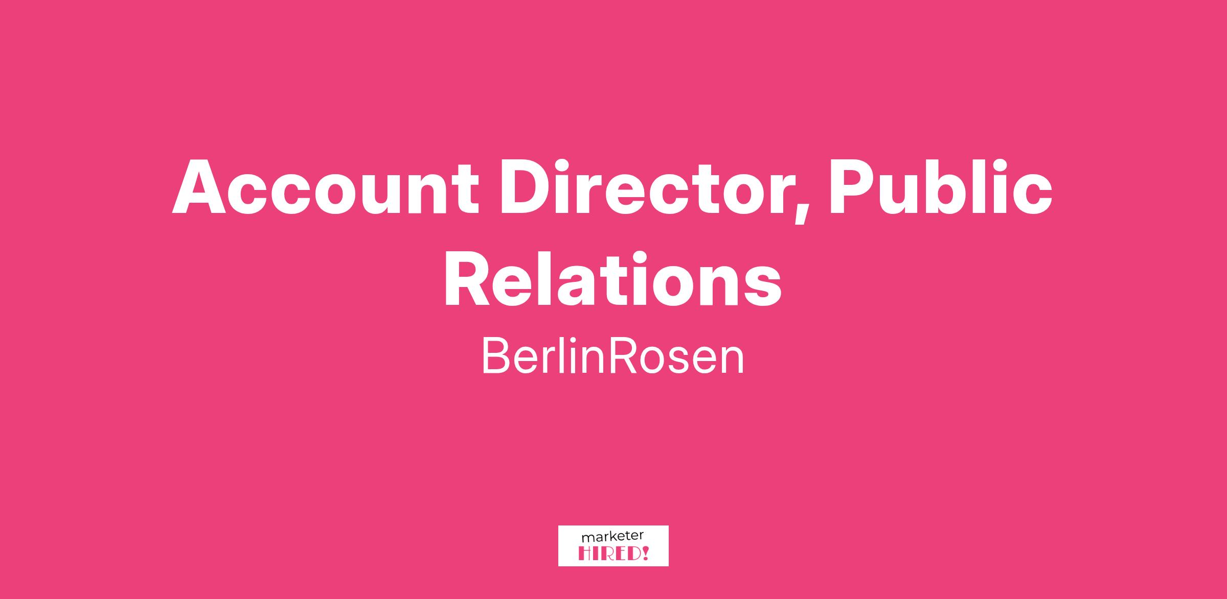 This role is based in our New York, N.Y. or Washington, D.C. office on a hybrid basis. The Tech and Innovation team is in-office at least 3 days per week.ACCOUNTABILITIES AND QUALIFICATIONSAs an Account Director, Public Relations on the Technology and Innovation team, you will…Lead strategic conversations and advance the communications strategy for multiple high-profile client accounts to deliver top-notch results for our clients.Develop and oversee integrated campaigns that leverage public affairs, media and digital tactics to reach key audiences and achieve client goals.Hold the pen on drafting high level materials including strategy decks, communications plans, messaging and op-eds.Directly manage and mentor staff, and provide overall strategic direction and feedback for their development and client work.Collaborate closely with the management team to develop and inspire our team of strategists to be innovative and creative.Essential skills:Has 6+ years of relevant work experience in communications: PR agency or in-house for higher education institutions, companies, nonprofits media or journalism.Is an avid consumer of news, with a strong news sense and knowledge of the media and experience engaging and maintaining strong relationships with key reporters covering the top issues of the day.Ability to confidently communicate clearly and effectively both verbally and in writing, with varying levels of staff, clients and the media, and is comfortable thinking on their feet.Ability to multi-task easily, including handling multiple assignments at once, working quickly and meeting deadlines in a fast-paced environment while paying close attention to details.Enjoys managing people and has experience in successfully motivating, leading and mentoring a diverse team to meet objectives.Note: Interested in this role but it’s not quite the right match? Applicants who meet some but not all or exceed the above criteria are still encouraged to apply! We are eager to speak with candidates with diverse backgrounds and can assess role leveling on an individual basis.WORKING AT BERLINROSENCompensation philosophy: