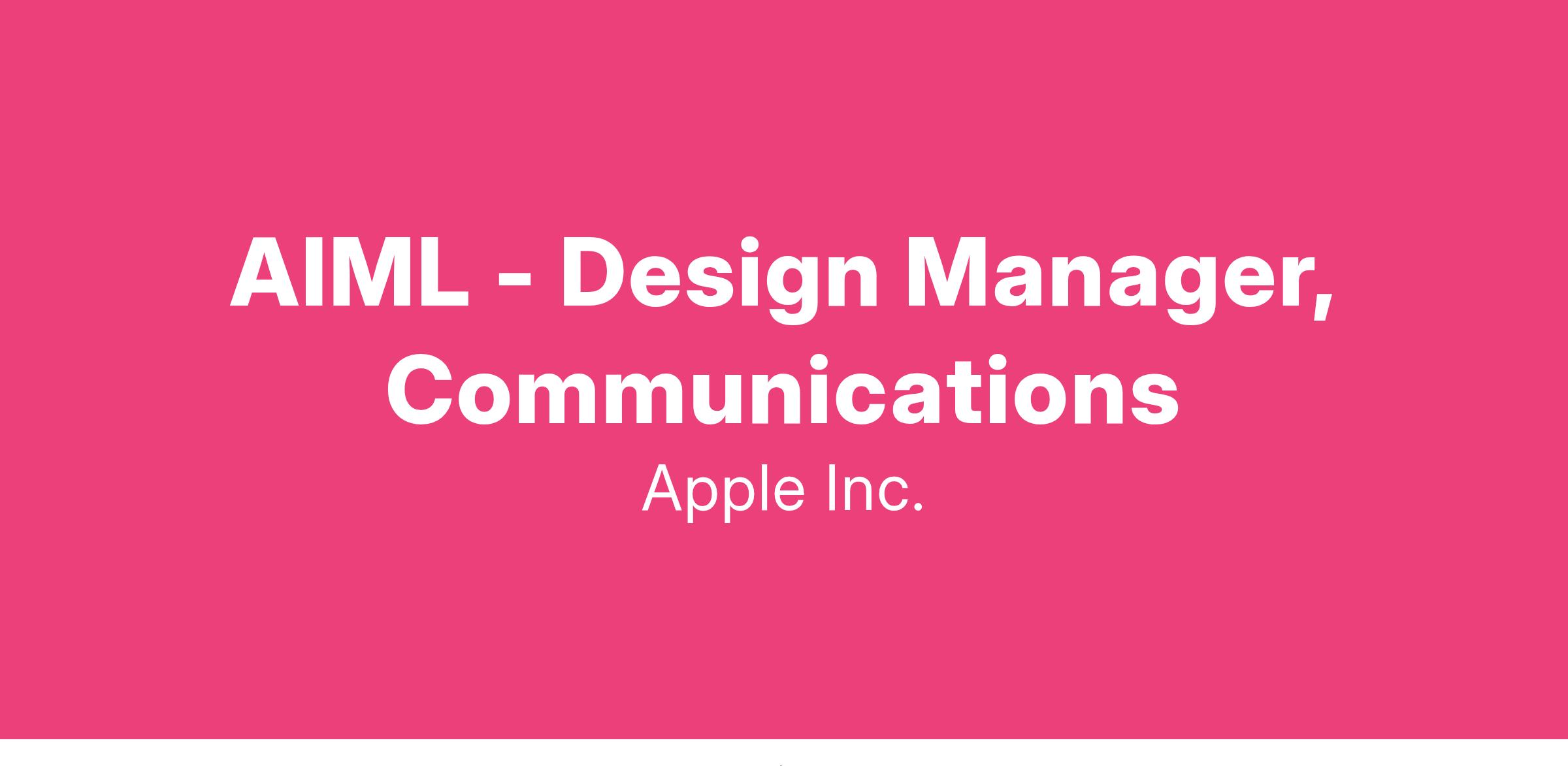 This role will lead design within the AIML Communications team, guiding creative professionals to create and deliver amazing work for the AIML organization, Apple employees and the ML research community. You will lead and operationalize the design team to handle incoming requests ranging from design consultation to full design ownership.