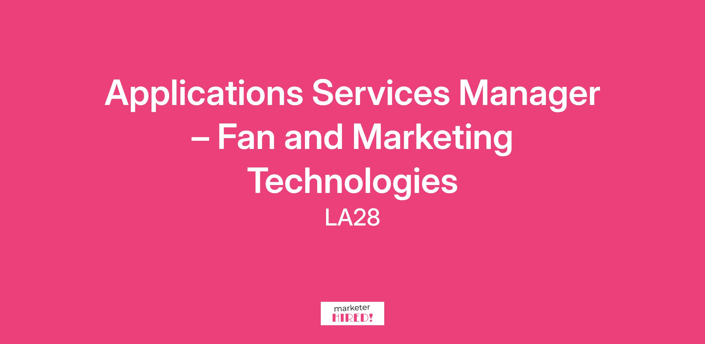 Applications Services Manager – Fan and Marketing Technologies: