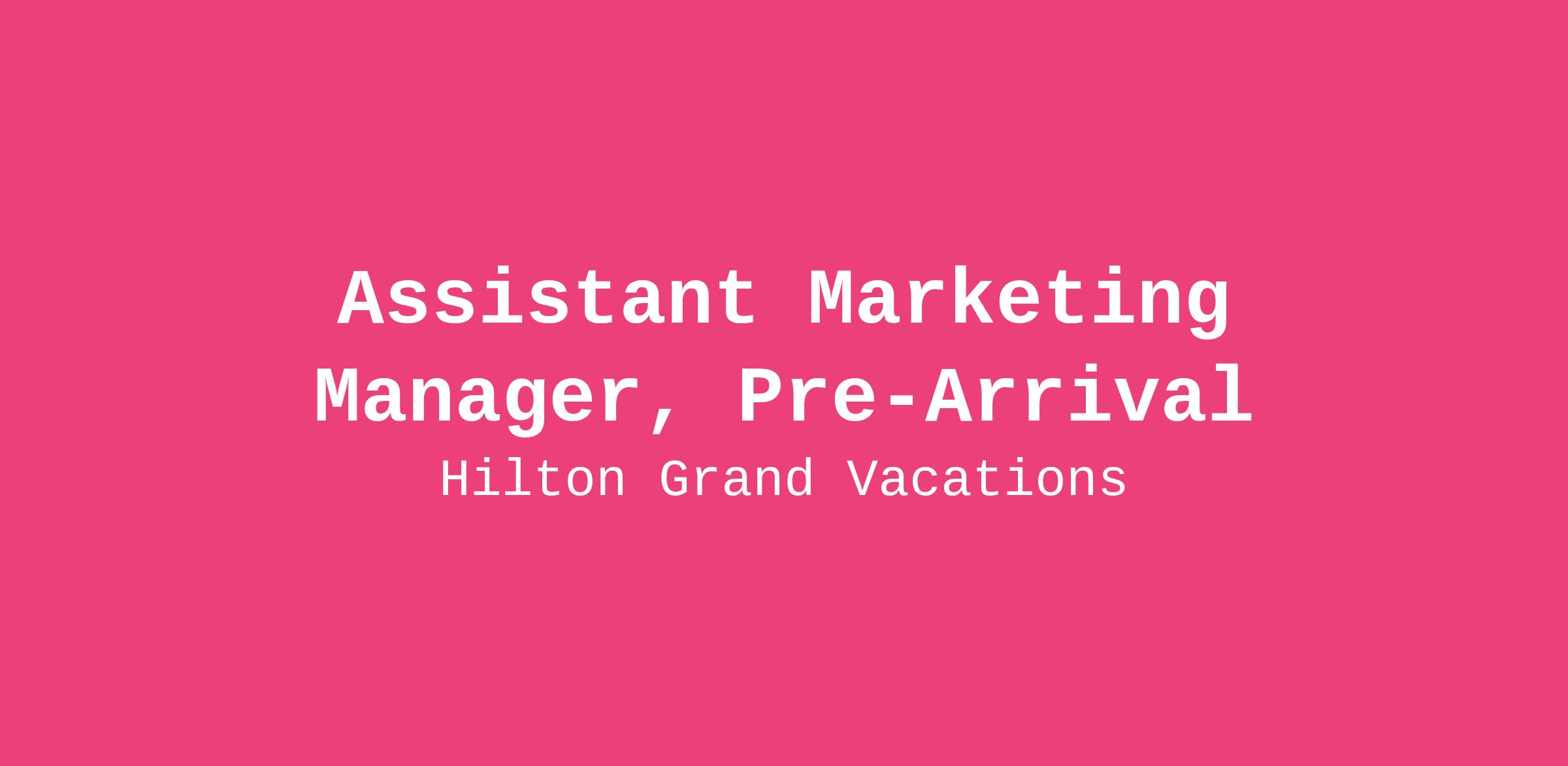 Assistant Marketing Manager, Pre-Arrival