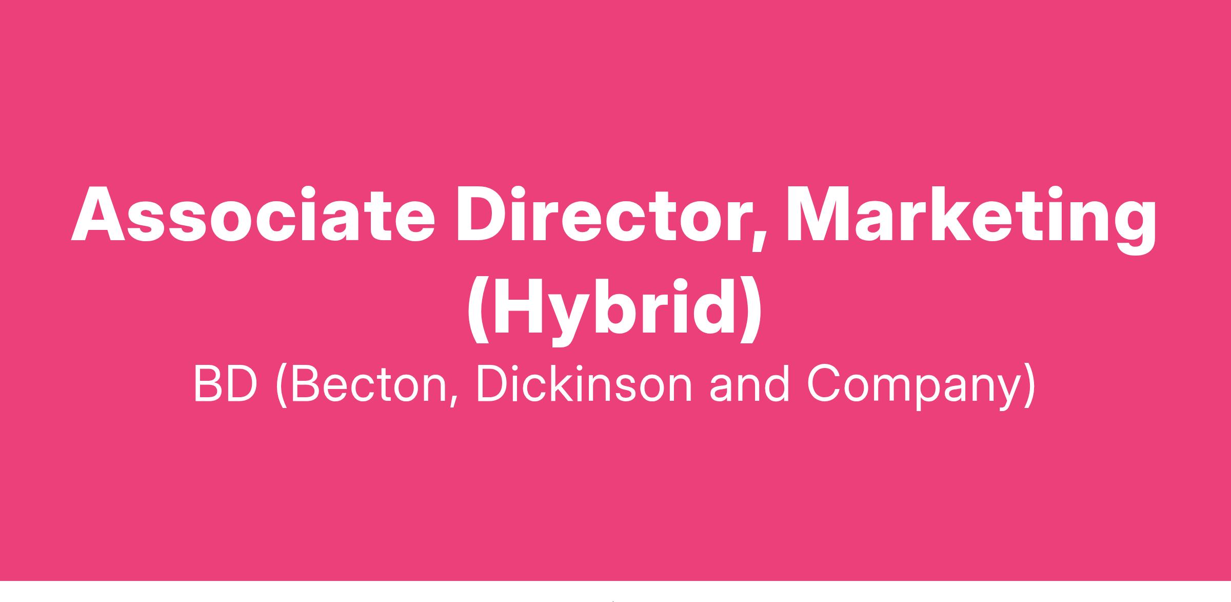 BD (Becton, Dickinson and Company) Associate Director, Marketing (Hybrid) Franklin Lakes, New Jersey Apply Now