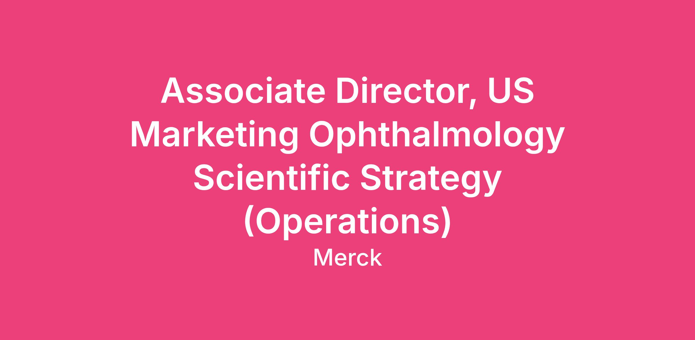 Associate Director, US Marketing Ophthalmology Scientific Strategy (Operations)