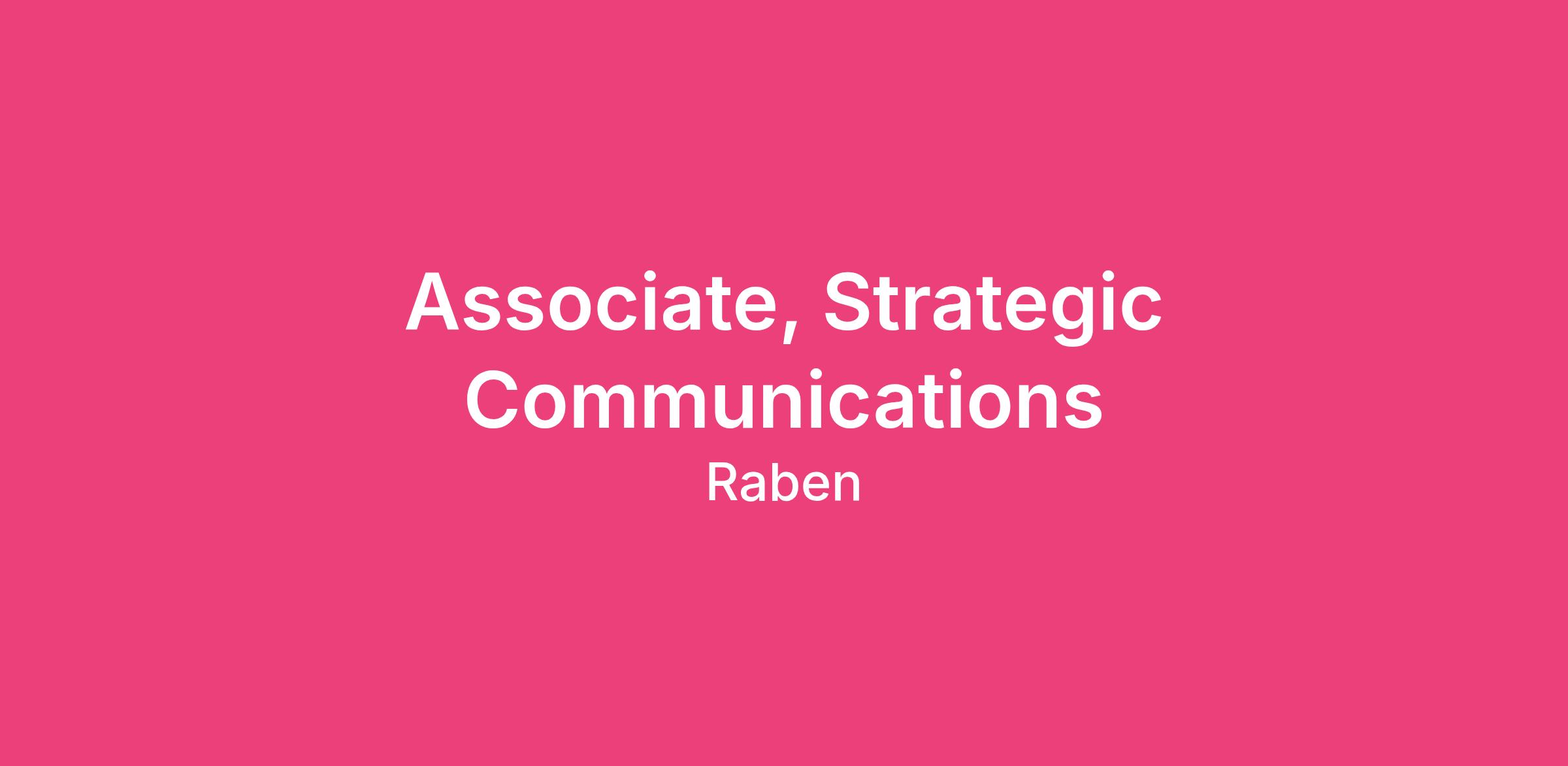 Associate, Strategic Communications
