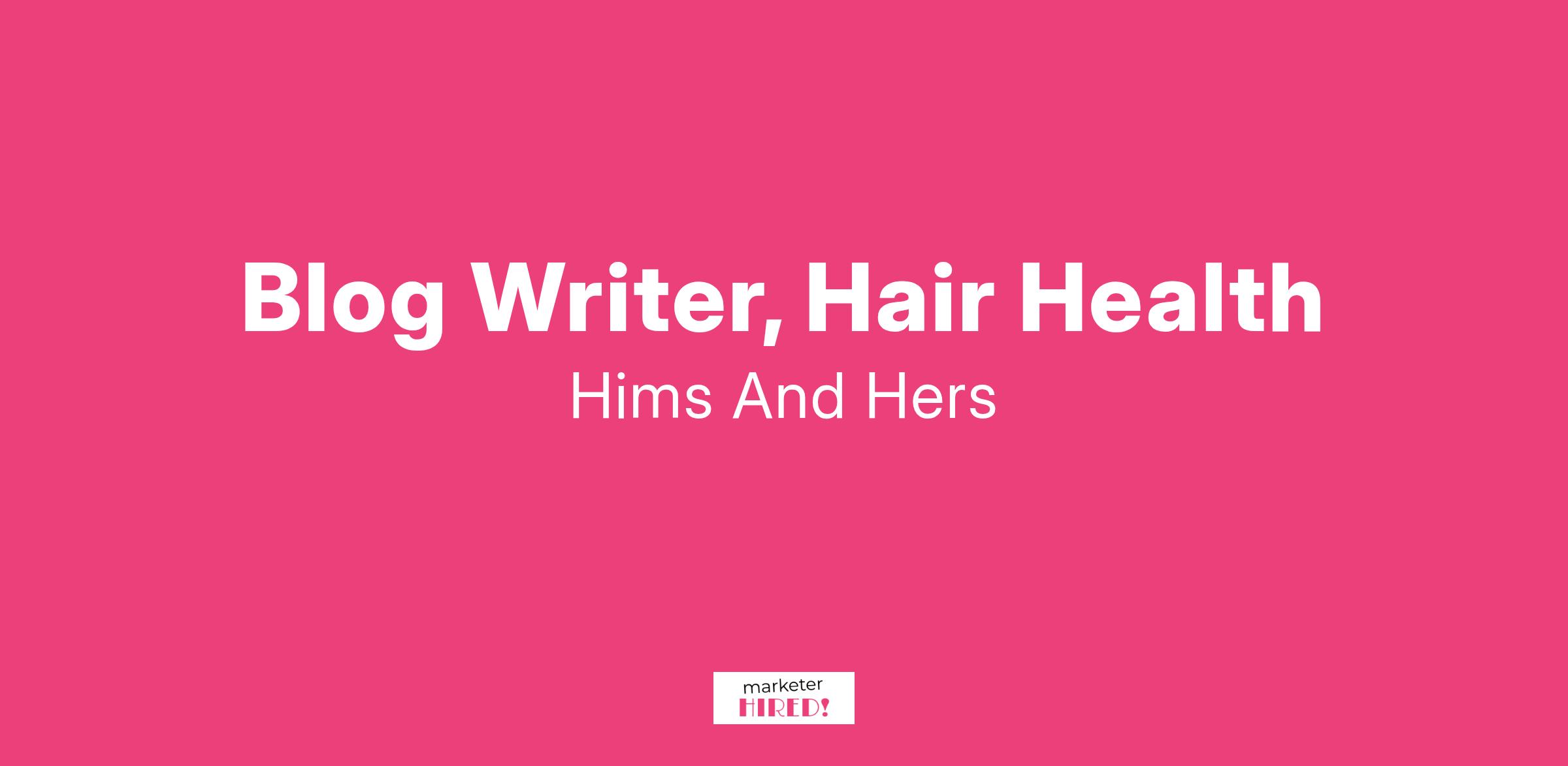Hims & Hers is seeking a Blog Writer, Hair Health, to temporarily support our editorial content team. As an independent contractor, you’ll write engaging, medically accurate, and SEO-friendly blog posts focused on hair care, hair loss, and men’s grooming.