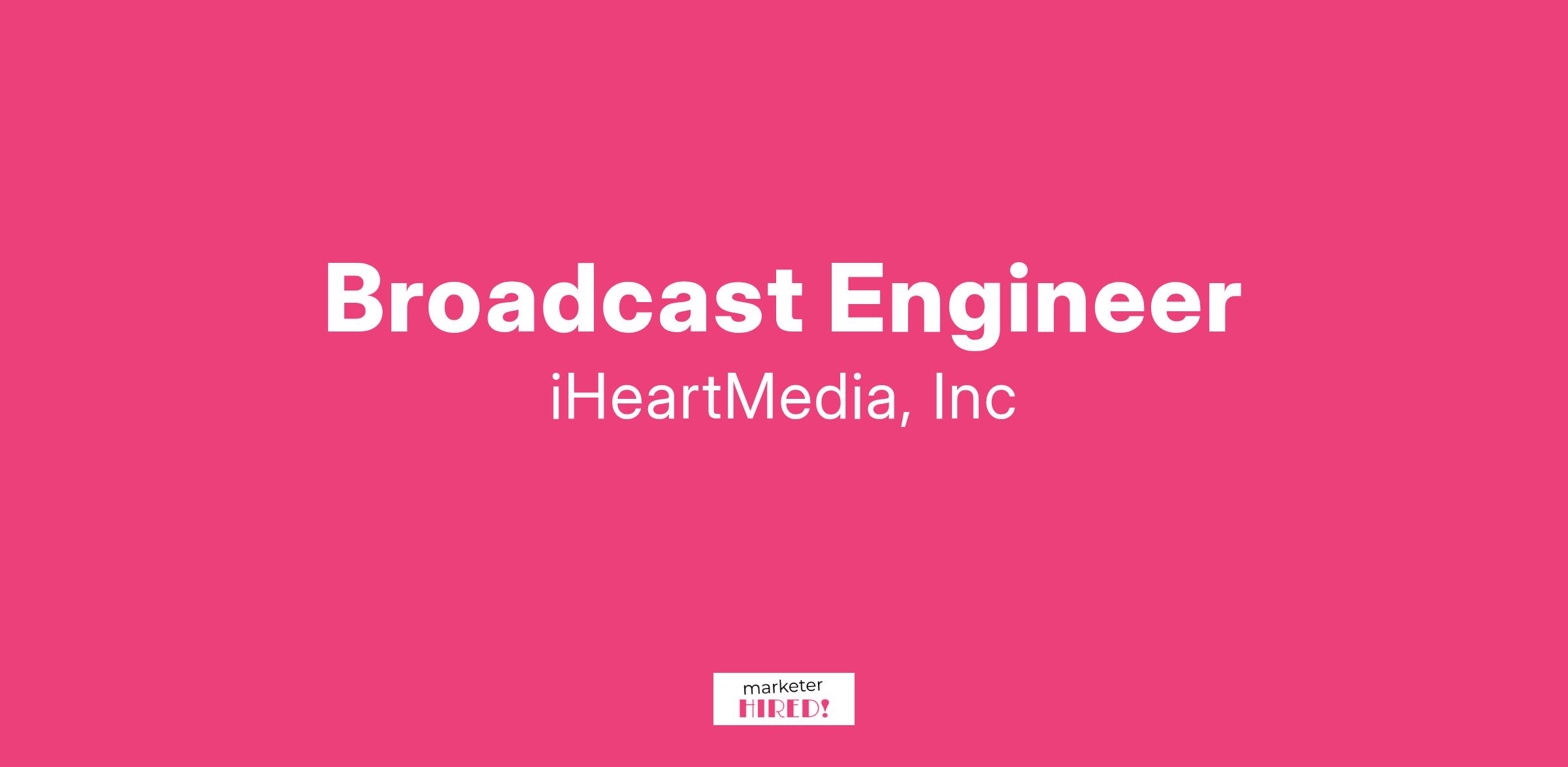 What You'll Bring:Keep equipment, both transmitters and audio equipment, functionalMaintain and repair radio frequency systems (RF) at all power level. Posses or obtains certification for RF exposure safety.Work with other members of the engineering team and contractors on projects.Respect for others and a strong belief that others should do this in return