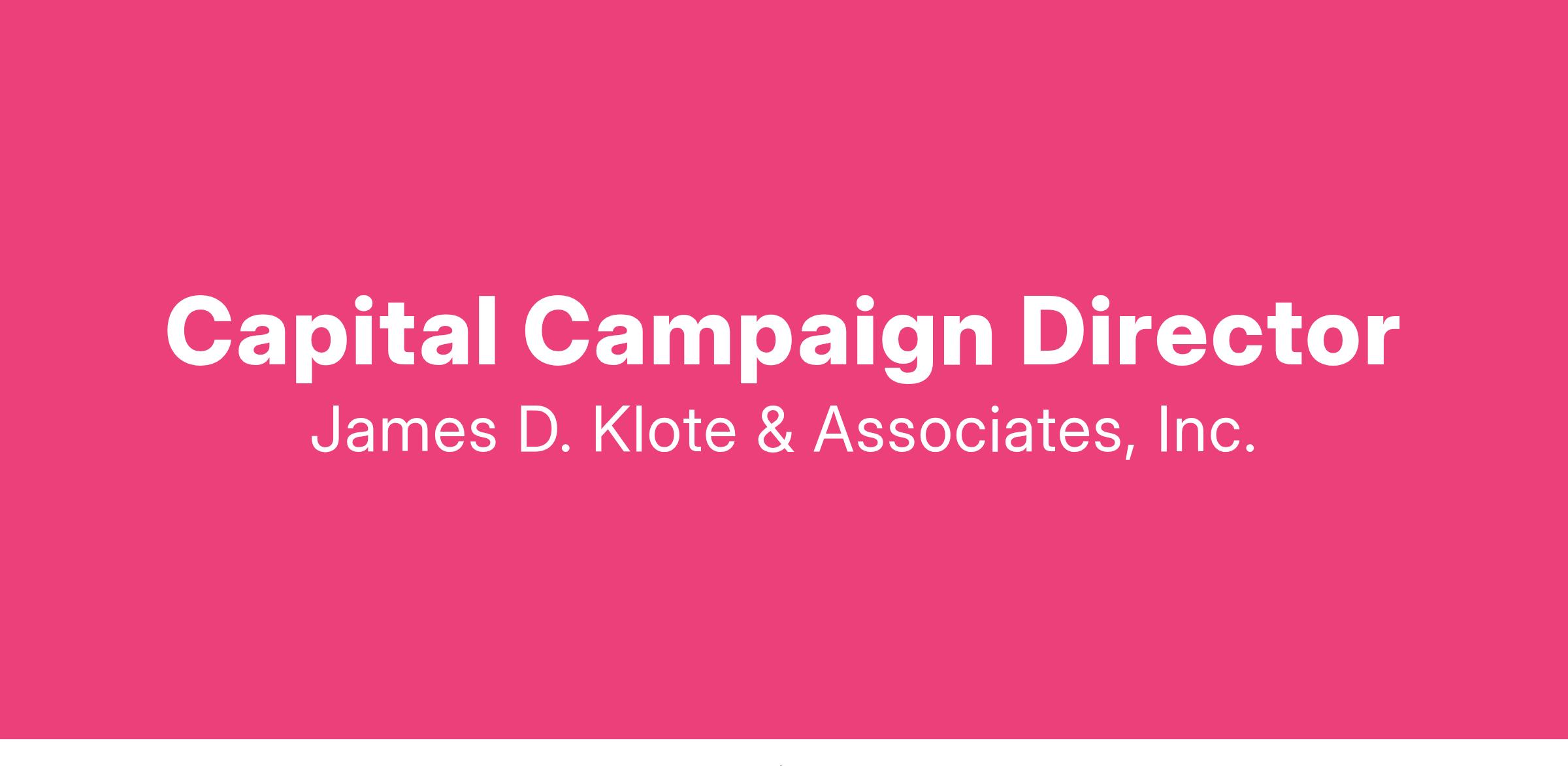 James D. Klote & Associates, Inc. is looking for a Capital Campaign Director in Great Falls, VA.