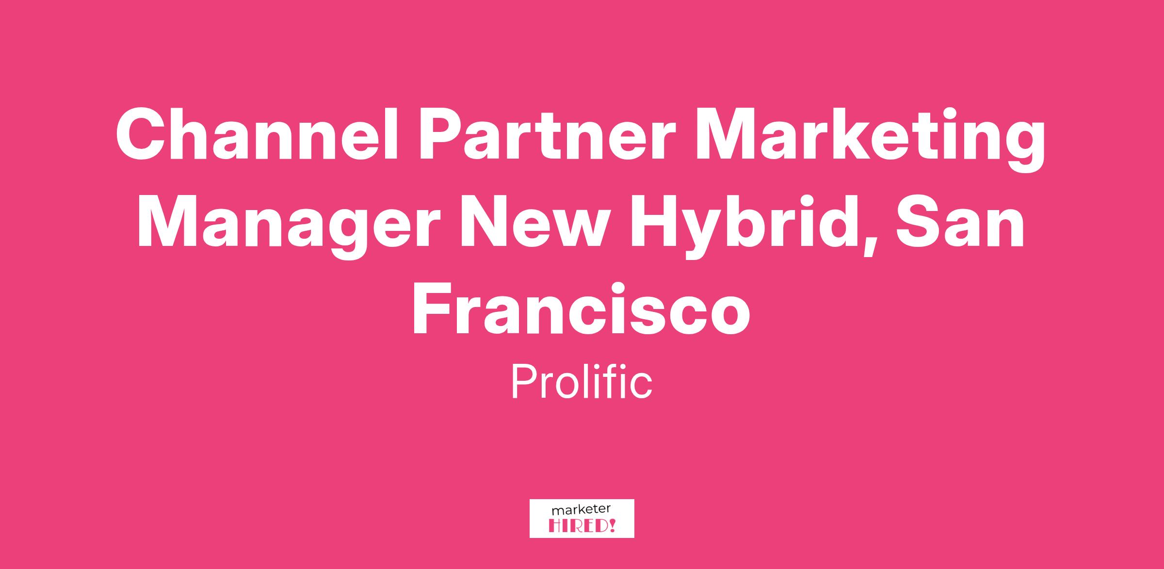 Channel Partner Marketing Manager New Hybrid, San Francisco