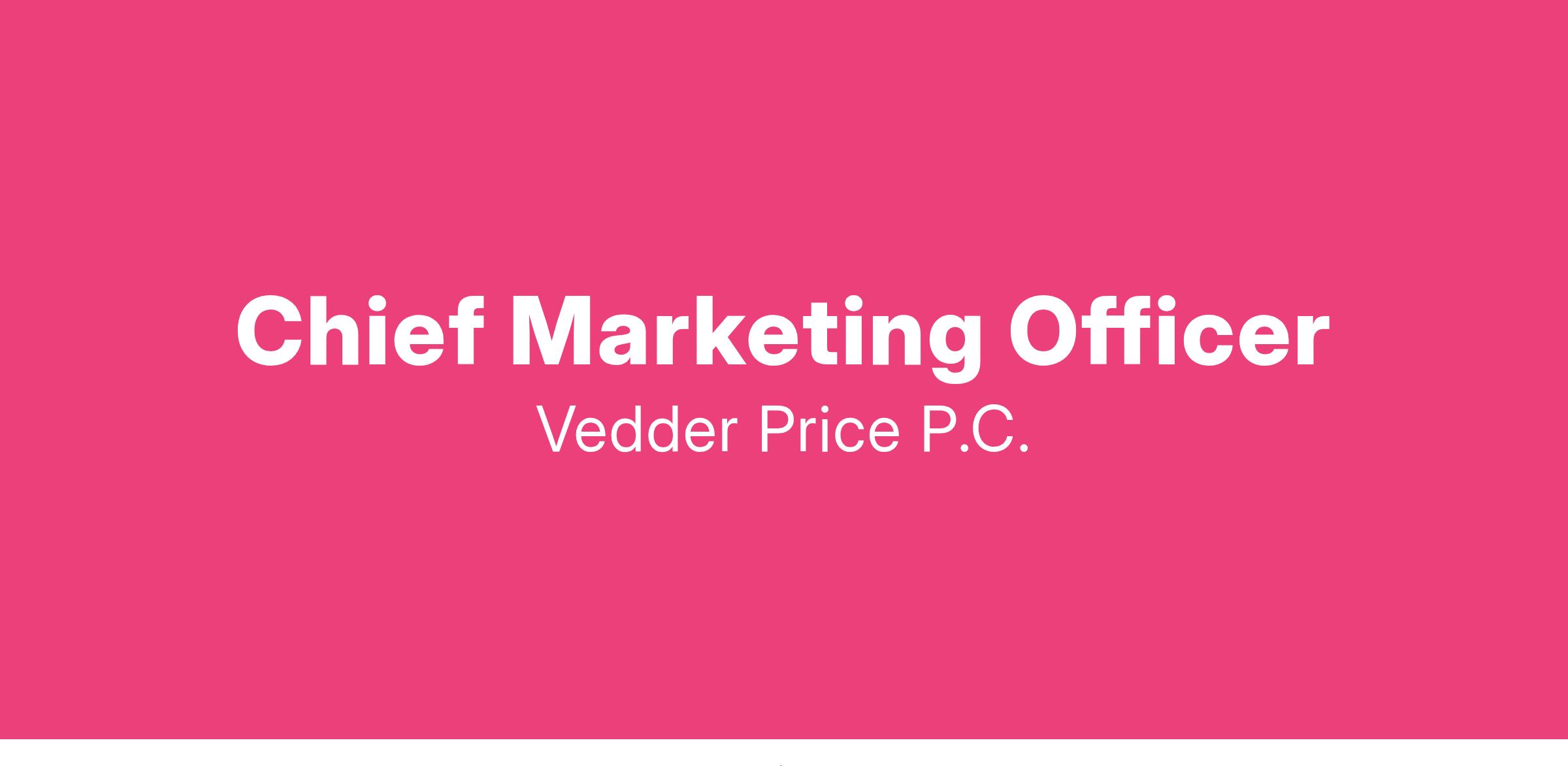 Vedder Price's Chicago office is looking for a Chief Marketing Officer. The Chief Marketing Officer is an integral part of the Firm’s leadership team and is responsible for initiating and executing all marketing activities and events, Firm-branding initiatives, and marketing efforts. The CMO is a highly visible role, responsible for implementing the Firm’s strategic planning initiatives for marketing growth and increasing profitability. This professional is responsible for helping to build a business support culture within the firm, developing responsive and effective marketing operations and processes, as well as formulating and standardizing firm communications that brand Vedder Price as a leading legal services provider in its target markets. The CMO is responsible for guiding the development, implementation, and use of marketing-related systems, while leading the global marketing team and function.