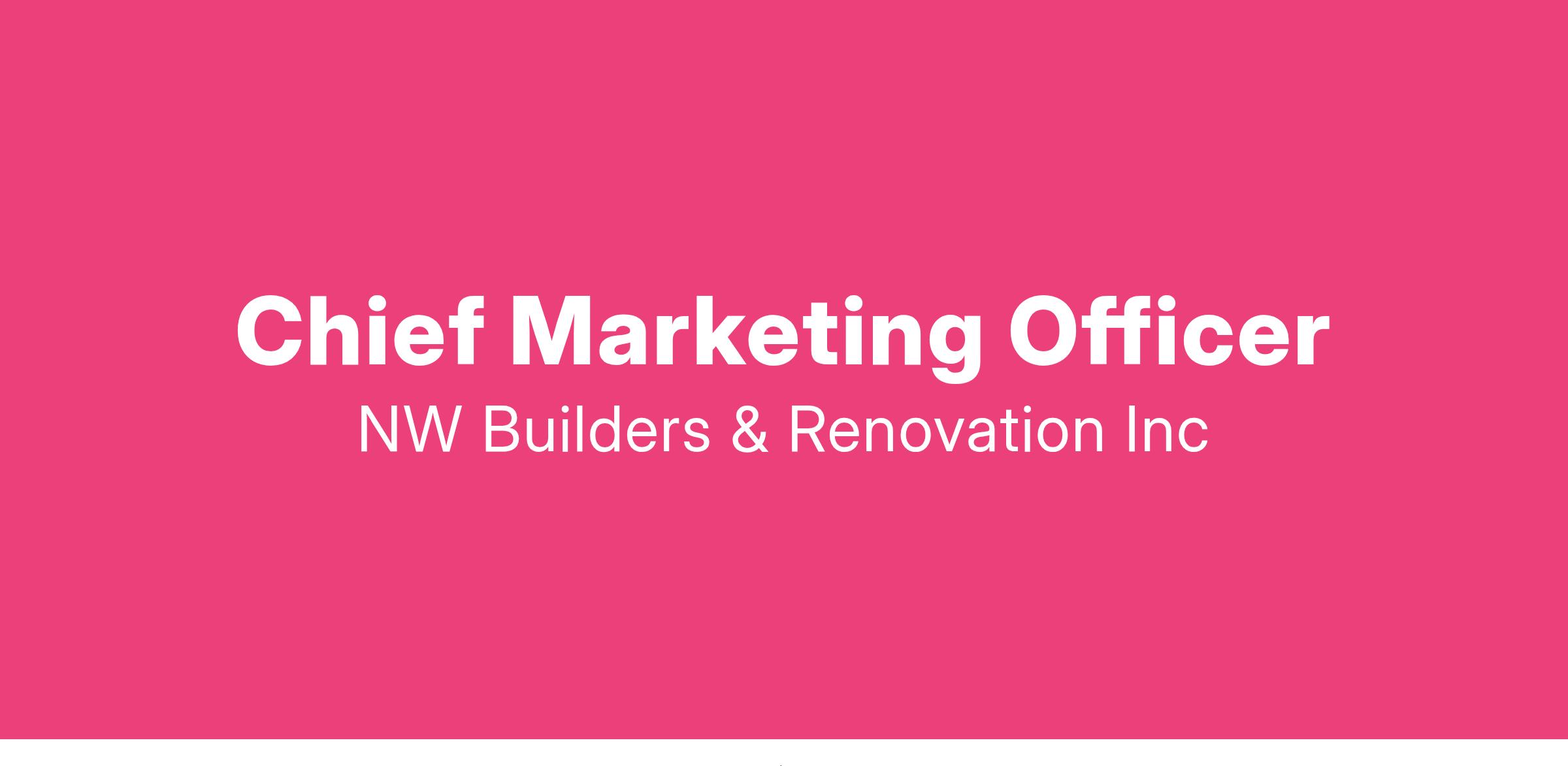 NW Builders and Renovation is a leading home improvement company specializing in roofing, decking, siding, bathroom and kitchen remodels, ADUs, new construction, and more. We take pride in delivering exceptional craftsmanship and service to our customers. As we grow, we are looking for a dynamic and experienced Chief Marketing Officer (CMO) to lead our marketing efforts and take our brand to the next level.