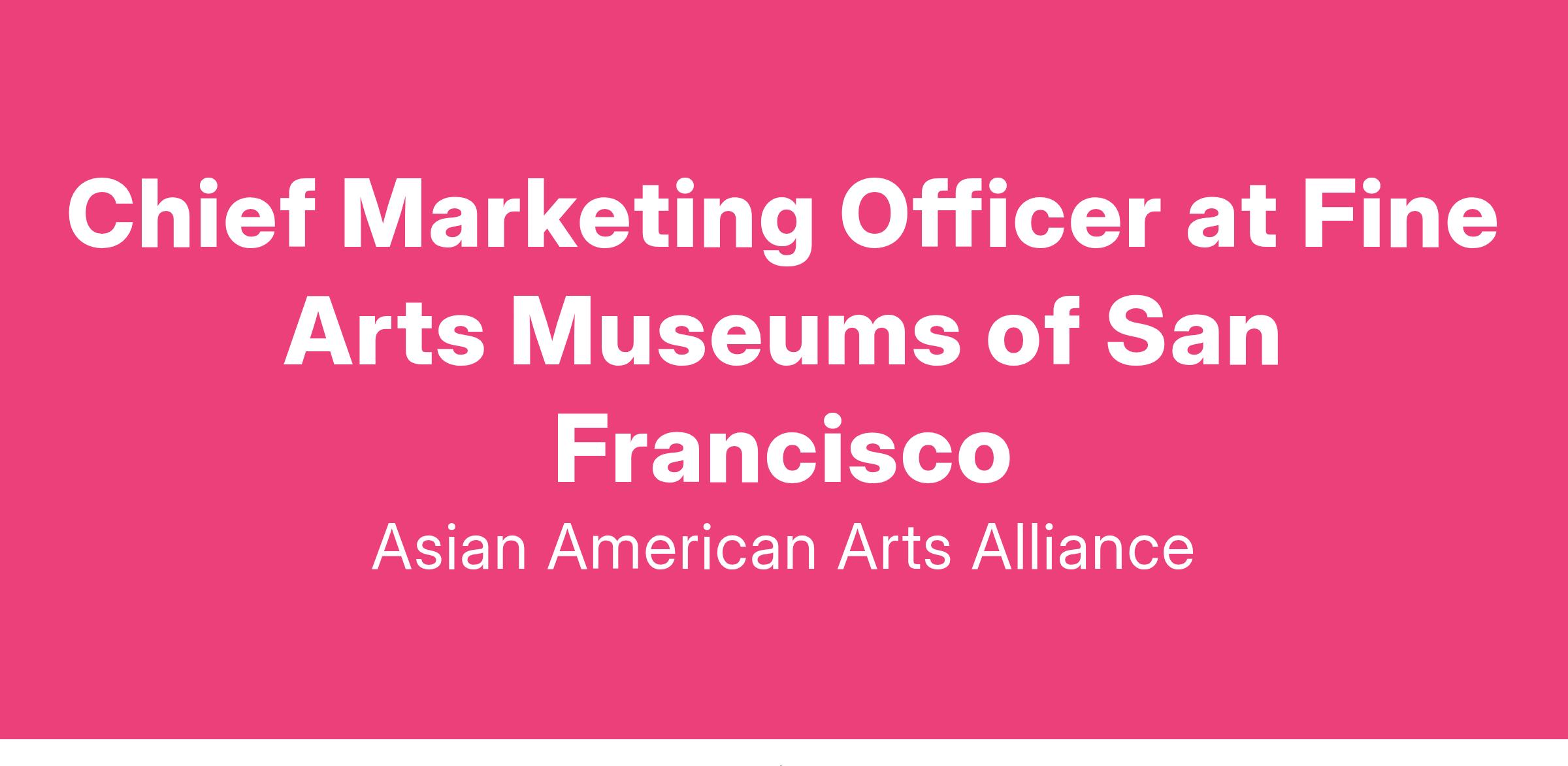 The CMO will participate with the Board of Trustees, Director and CEO, and other senior management staff in charting the direction of FAMSF, ensuring its accountability to all constituencies, and ensuring its effective operation. Within FAMSF, the position has primary working relationships with director and management level staff, staff of the Marketing and Communications department, staff of the Executive Office, Art, Education and Public Programs, Philanthropy, Exhibitions, and Finance Divisions, and closely collaborates with the Digital Strategy Division to align on brand presence across all channels. The CMO directly leads a marketing team of four, a communications team of four, a Graphic Design team of four, and a Visitor Experience team of more than 45 front line leaders, associates, and attendants. The CMO also oversees the work of external media and marketing partners, as well as other specialty consultants, and manages an annual expense budget of $6 million directed toward the achievement of its goals.