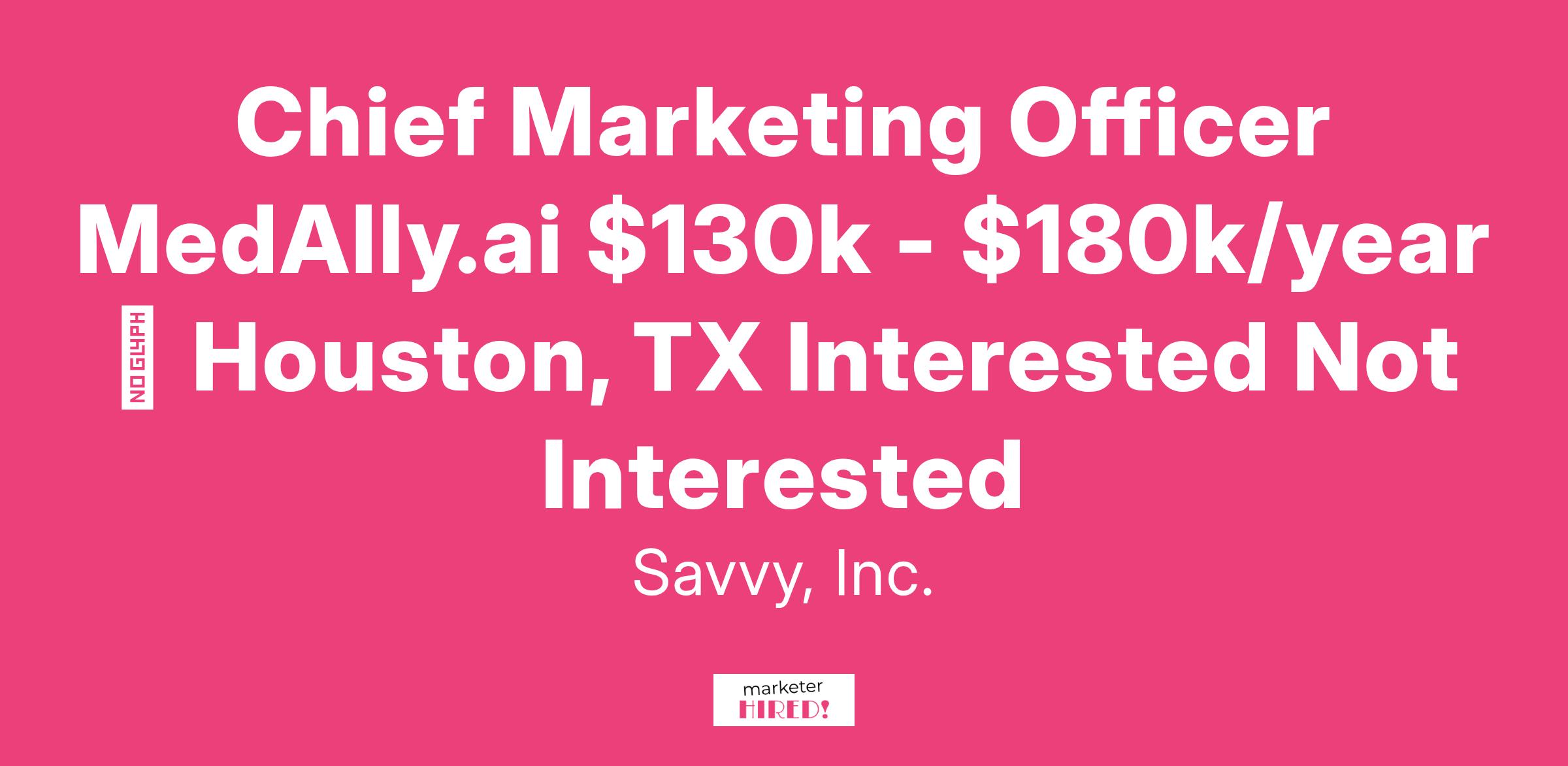 Chief Marketing Officer MedAlly.ai $130k - $180k/year ⋅ Houston, TX Interested Not Interested