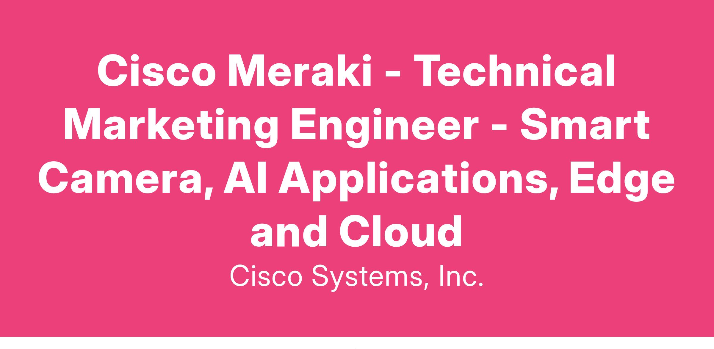 Cisco Meraki is revolutionizing physical security with our innovative MV smart camera product line, combining cloud-managed simplicity with advanced AI-powered applications. We are seeking an experienced and adaptable Technical Marketing Engineer (TME) to join our Product Management team and contribute to shaping the future of computer vision and machine learning in a dynamic, fast-paced environment.