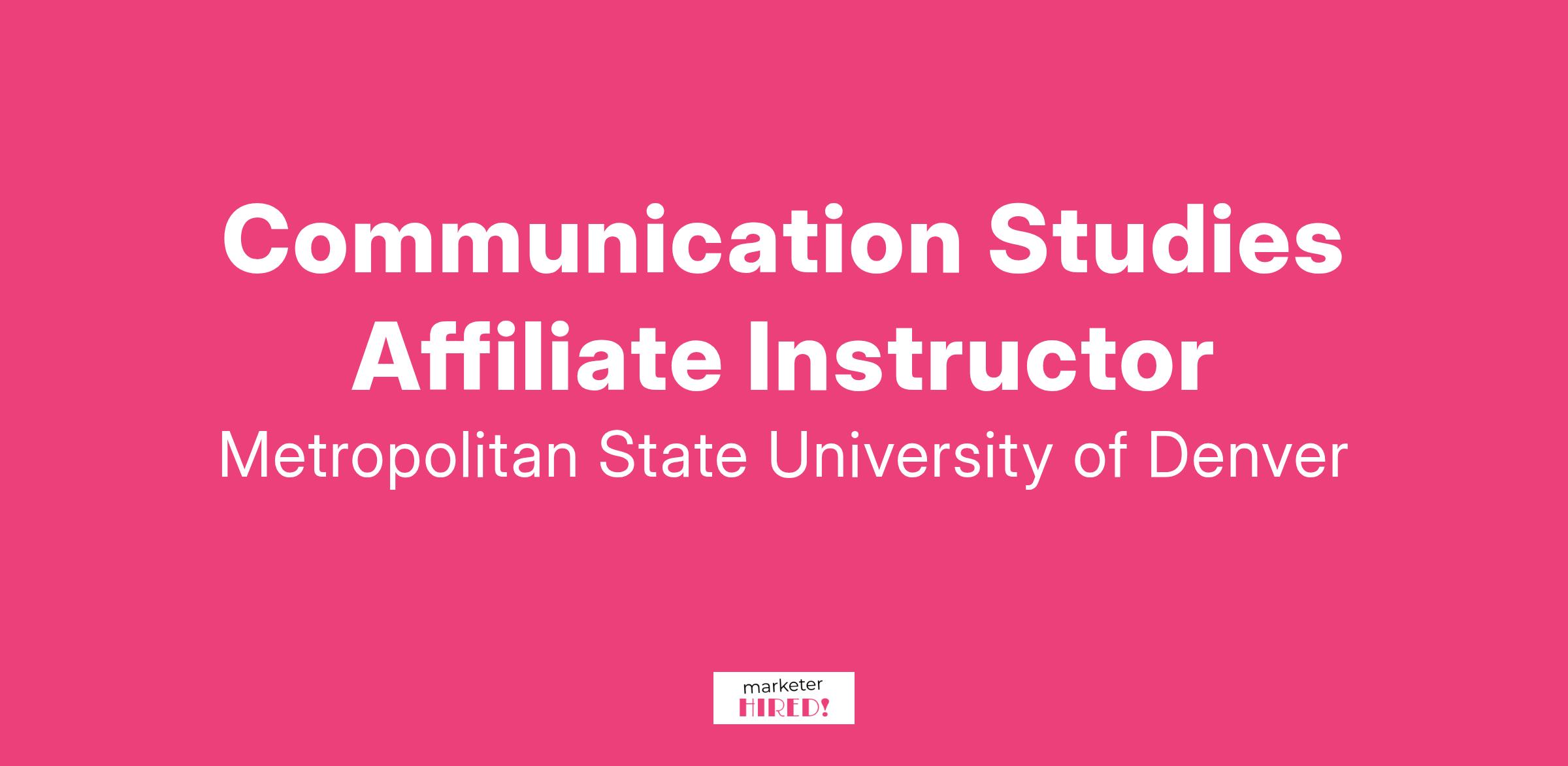 The Department of Communication Studies at Metropolitan State University of Denver (MSU Denver) invites applications for part-time affiliate faculty teaching positions. Faculty in the Department of Communication Studies cultivate student skill in understanding, evaluating, and producing communication. The persons added to our affiliate instructor pool are part-time faculty who work on a contracted basis dependent on department needs. Individuals may apply to teach in these emphasis areas with the defined academic qualifications: Public Speaking, Communication Theory, Organizational Communication, Gender and Communication, Culture and Communication, Rhetoric, and Interpersonal Communication.