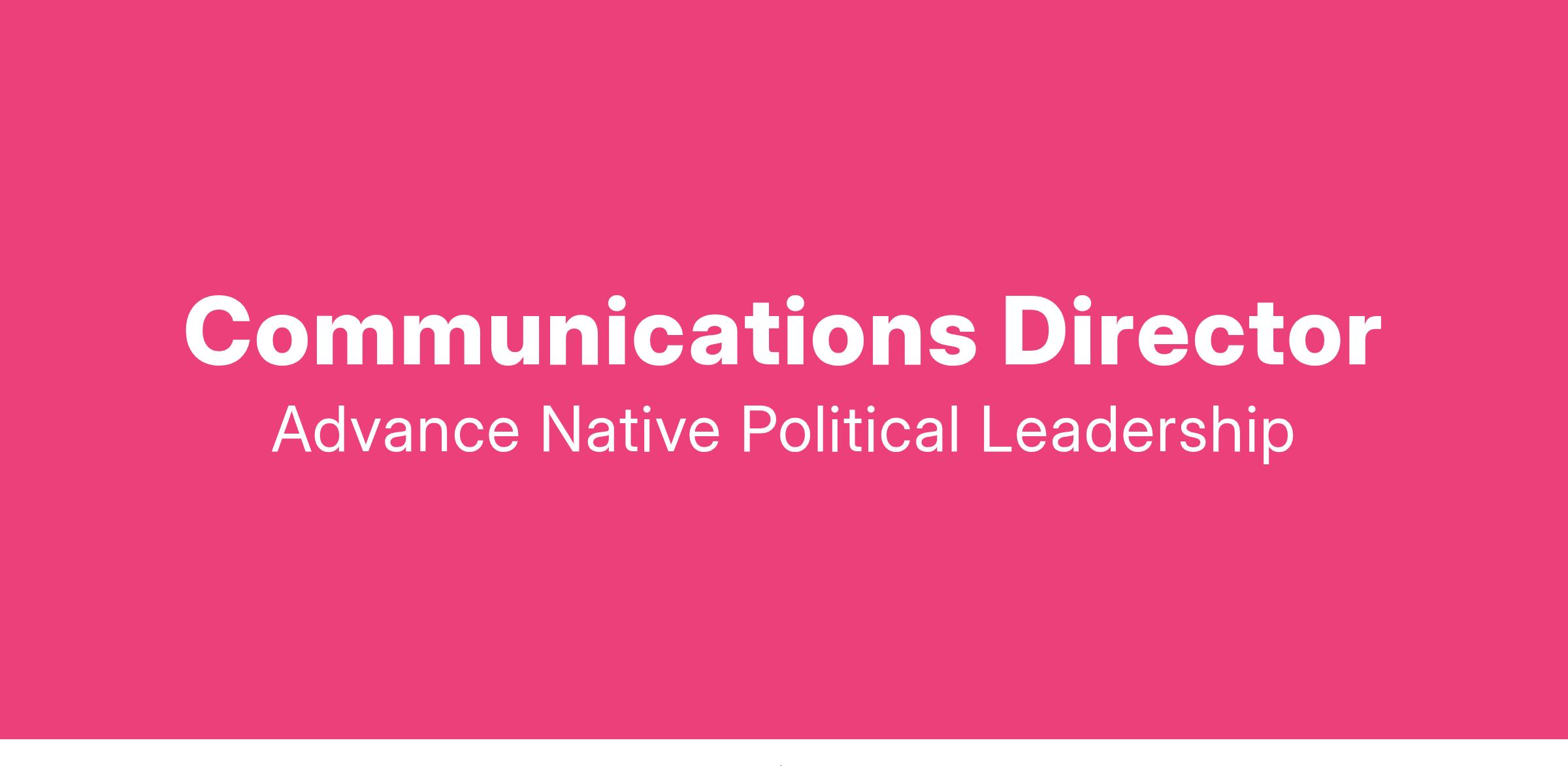 Advance is seeking a driven, strategic Communications Director to join our Leadership Team. The Communications Director will be responsible for developing and executing a comprehensive communications strategy and ambitious roadmap to achieve Advance’s mission through creative writing and storytelling. The Communications Director reports to the Executive Director and works in deep partnership with peer Directors on the team. This supervisory role requires an understanding of Native cultures and a superior attention to detail, project management, people skills, and a deep appreciation for ingenuity and collaboration.