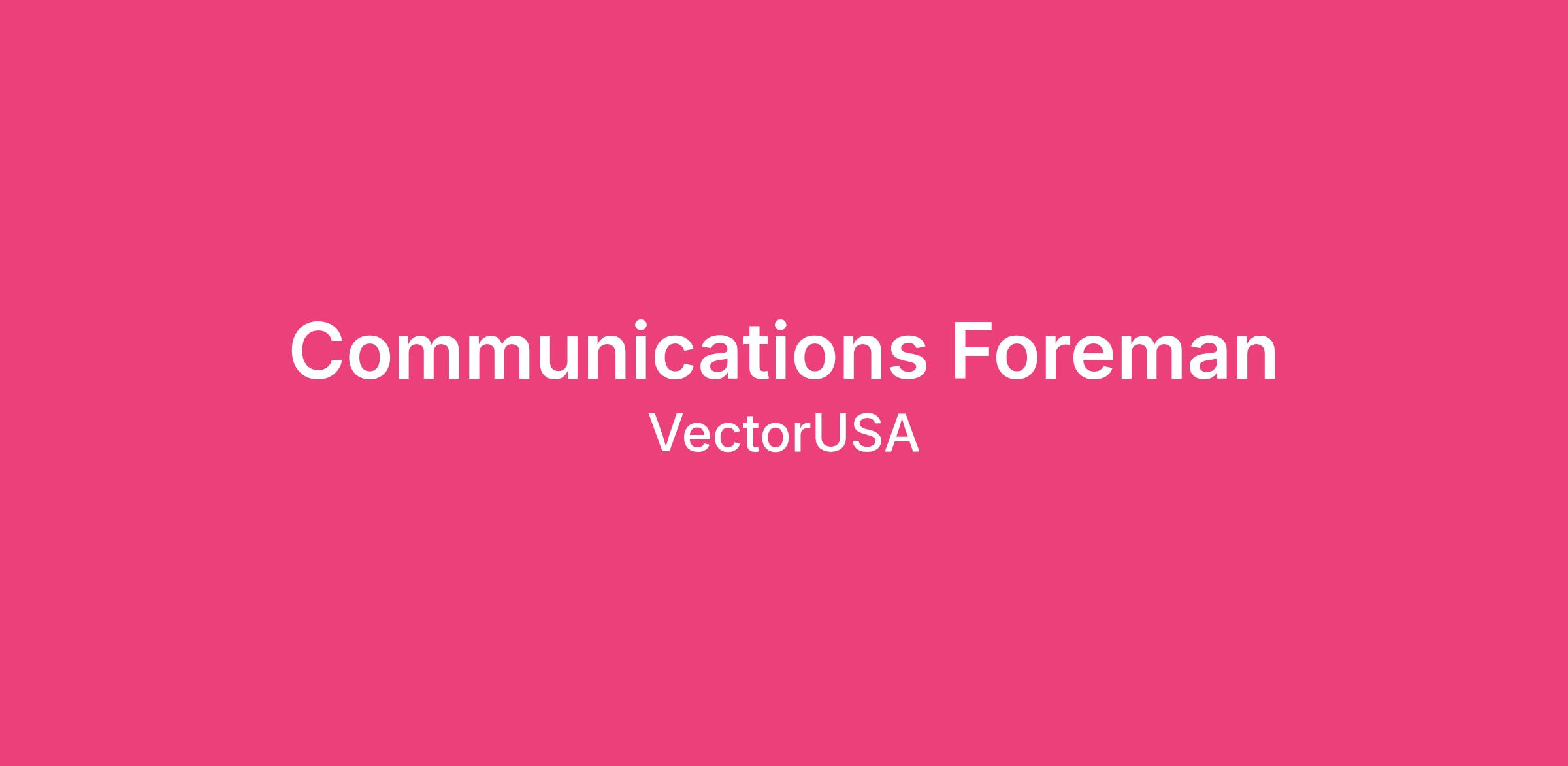 VectorUSA is looking for a Communications Foreman, this is an opportunity to join the expanding installation team of a well-established, growing technology company. We are looking for a motivated individual with 4-6 years’ experience that possess in-depth knowledge of all of the technical disciplines required to successfully complete installations consisting of premise low voltage distribution systems. Required knowledge includes the ability to oversee, physically perform, and train people in the tasks associated with installing, maintaining, testing and troubleshooting jobs according to Vector’s standards.