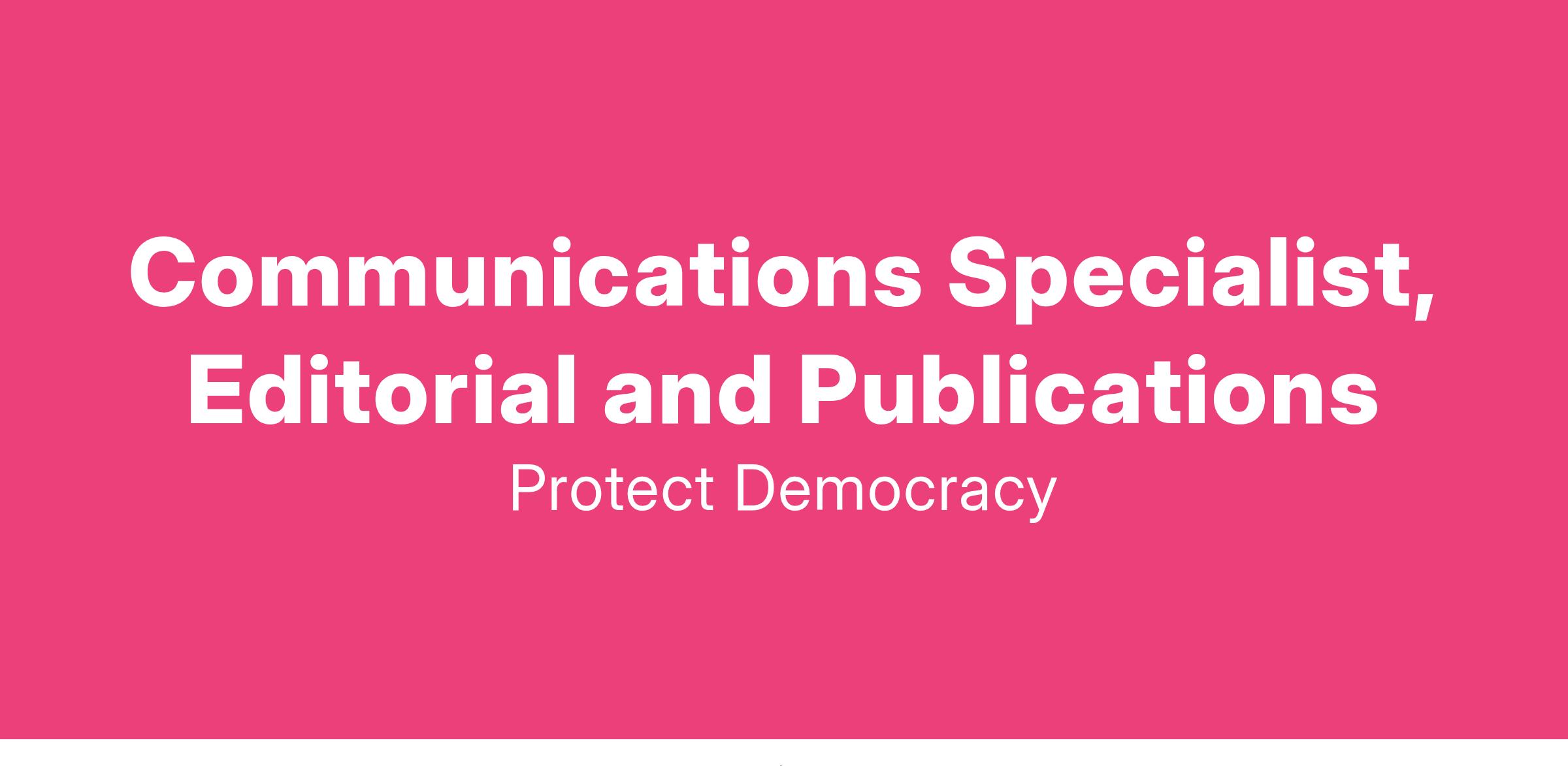 Protect Democracy seeks a Communications Specialist to support our exceptional in-house editorial team with writing and editing content for our flagship newsletter, website, social media, and more.