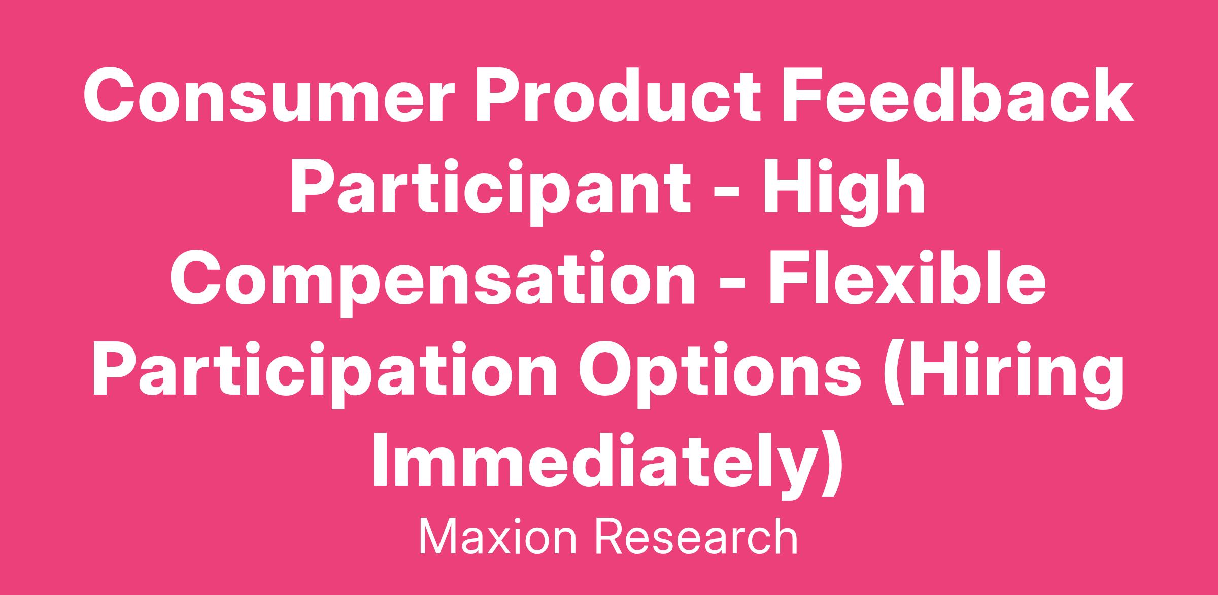 Consumer Product Feedback Participant - High Compensation - Flexible Participation Options (Hiring Immediately)