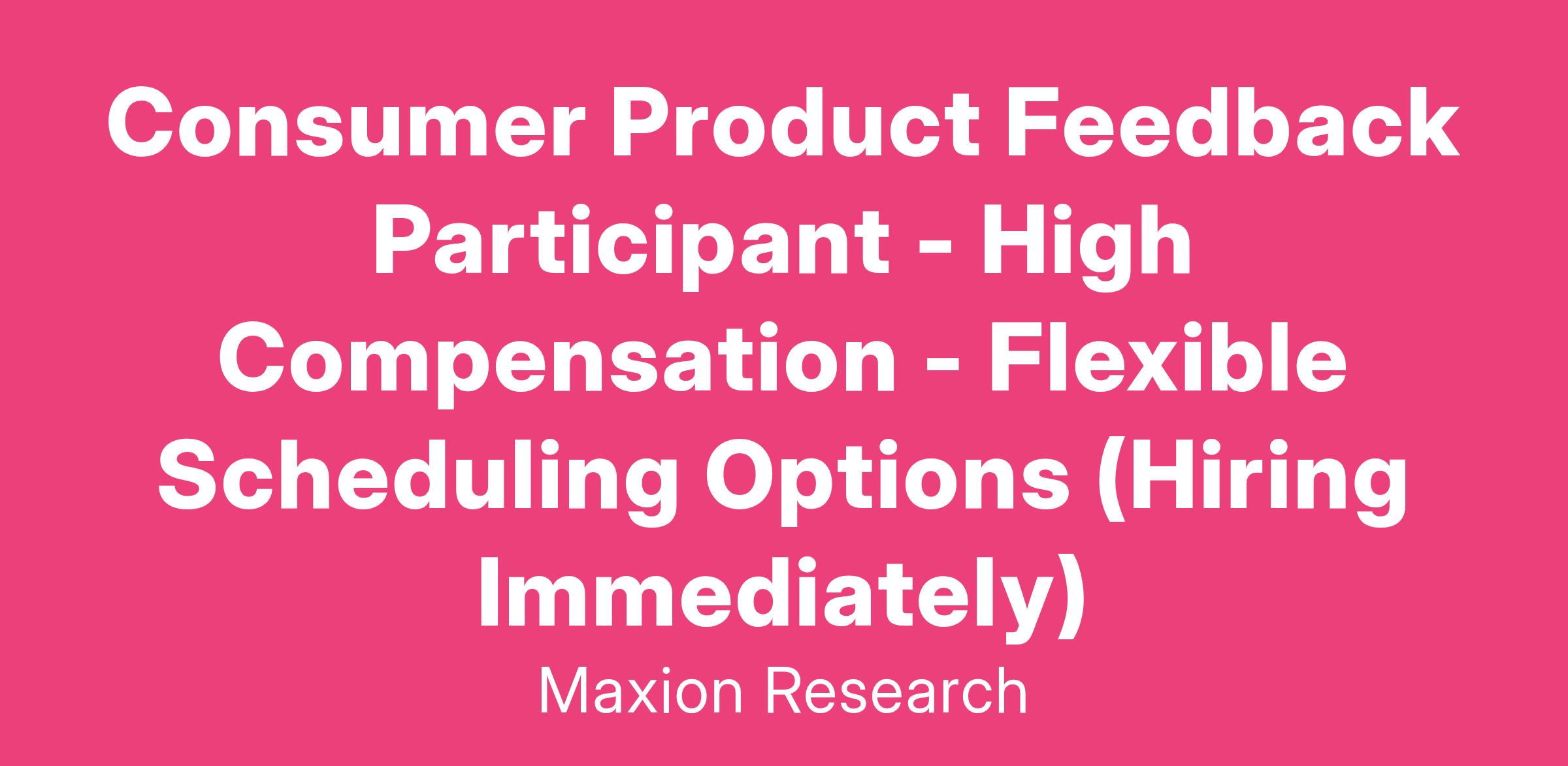 Consumer Product Feedback Participant - High Compensation - Flexible Scheduling Options (Hiring Immediately)