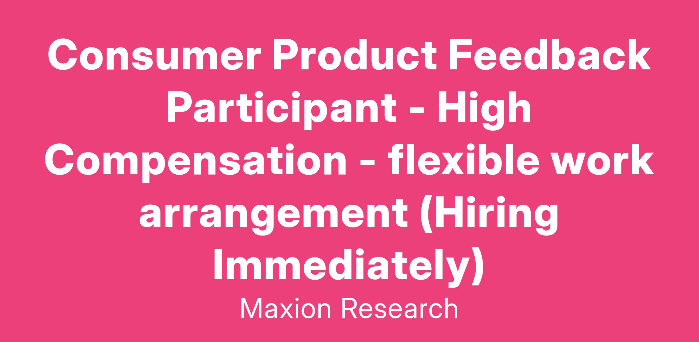 Consumer Product Feedback Participant - High Compensation - flexible work arrangement (Hiring Immediately)