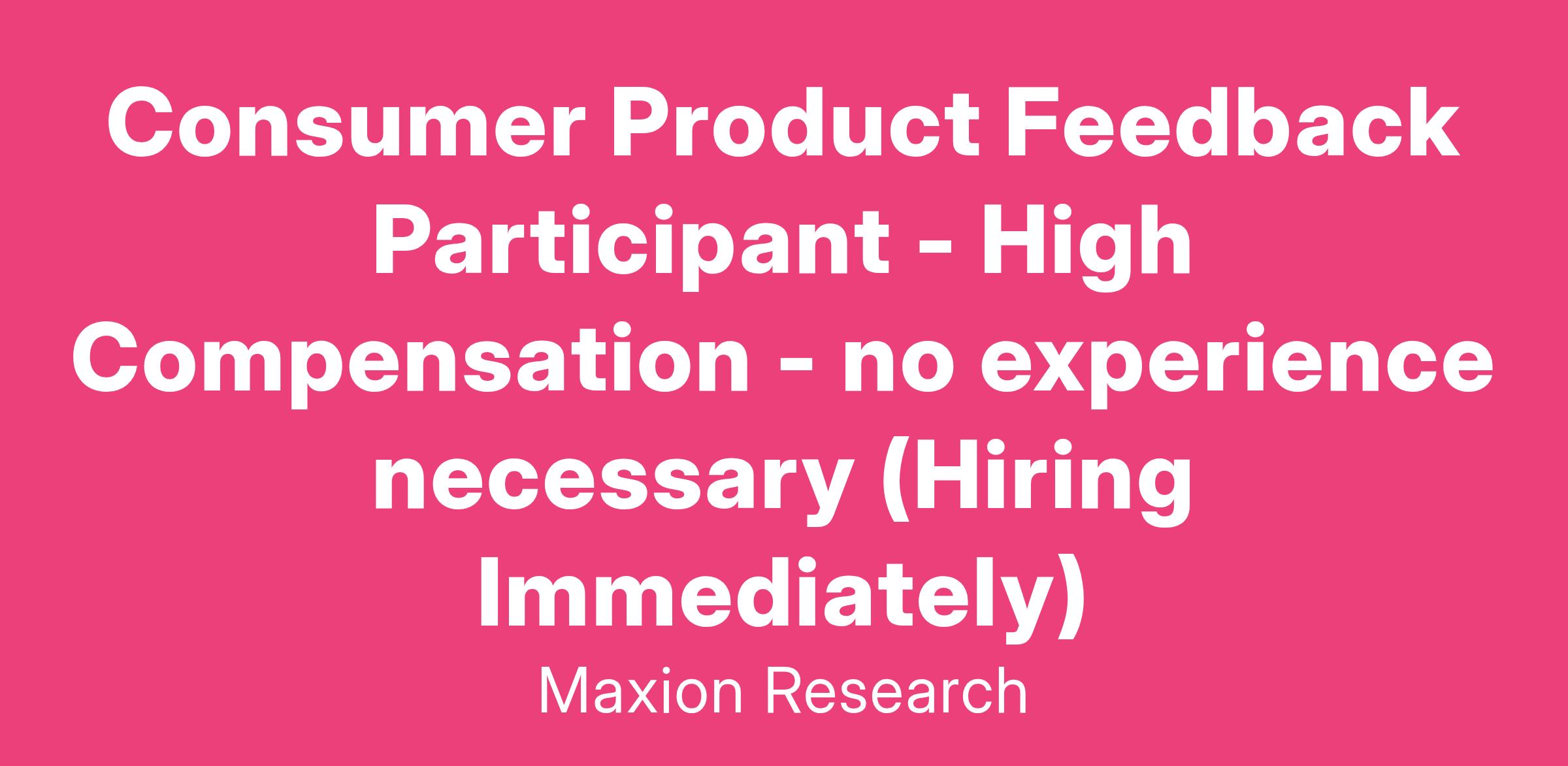 Consumer Product Feedback Participant - High Compensation - no experience necessary (Hiring Immediately)