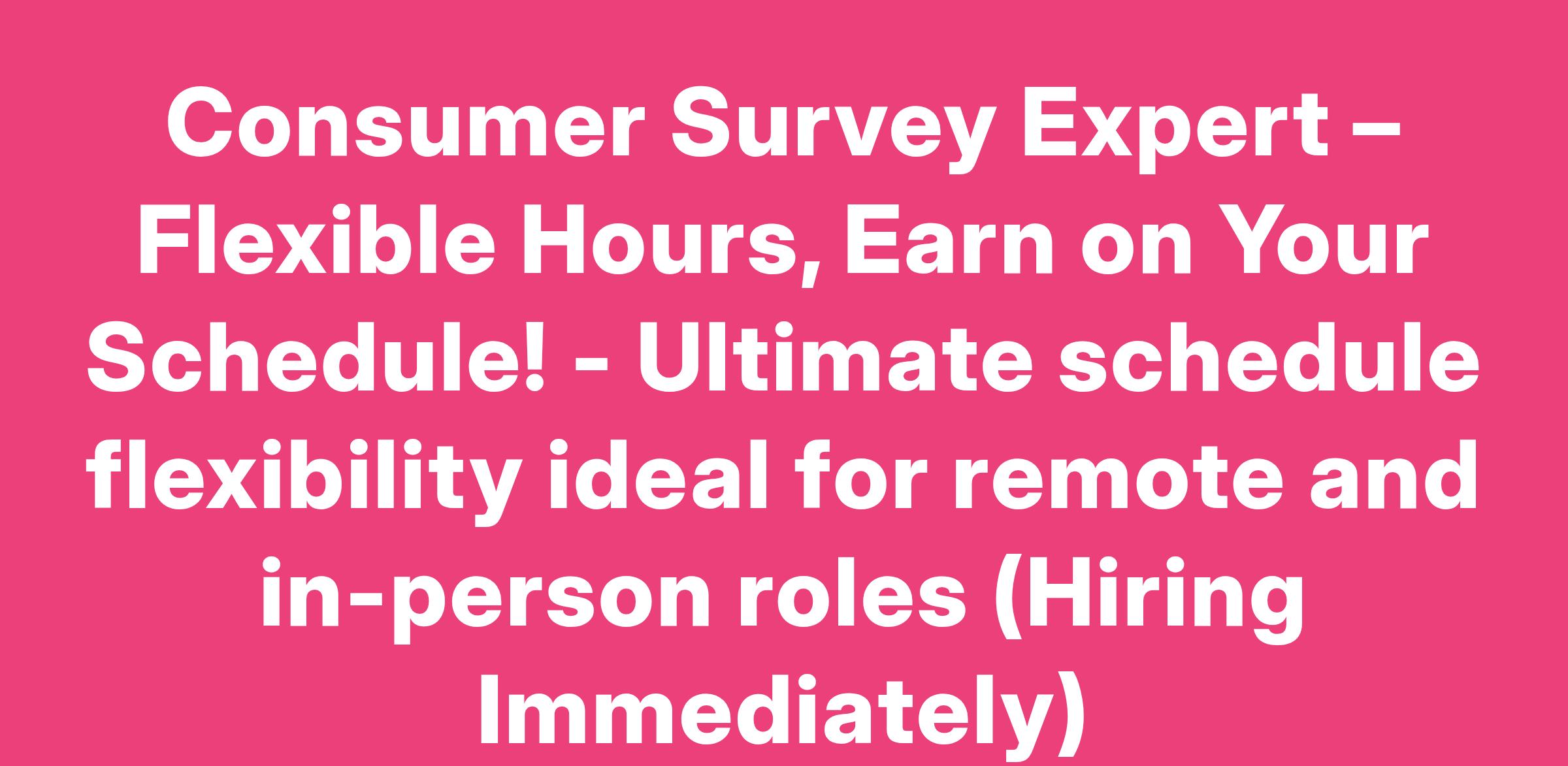 Consumer Survey Expert – Flexible Hours, Earn on Your Schedule! - Ultimate schedule flexibility ideal for remote and in-person roles (Hiring Immediately)
