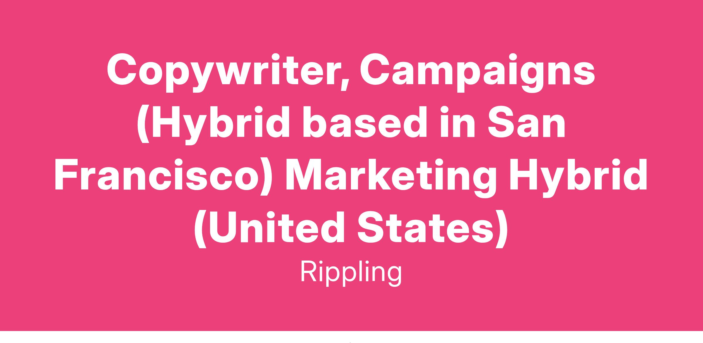 Copywriter, Campaigns (Hybrid based in San Francisco) Marketing Hybrid (United States)