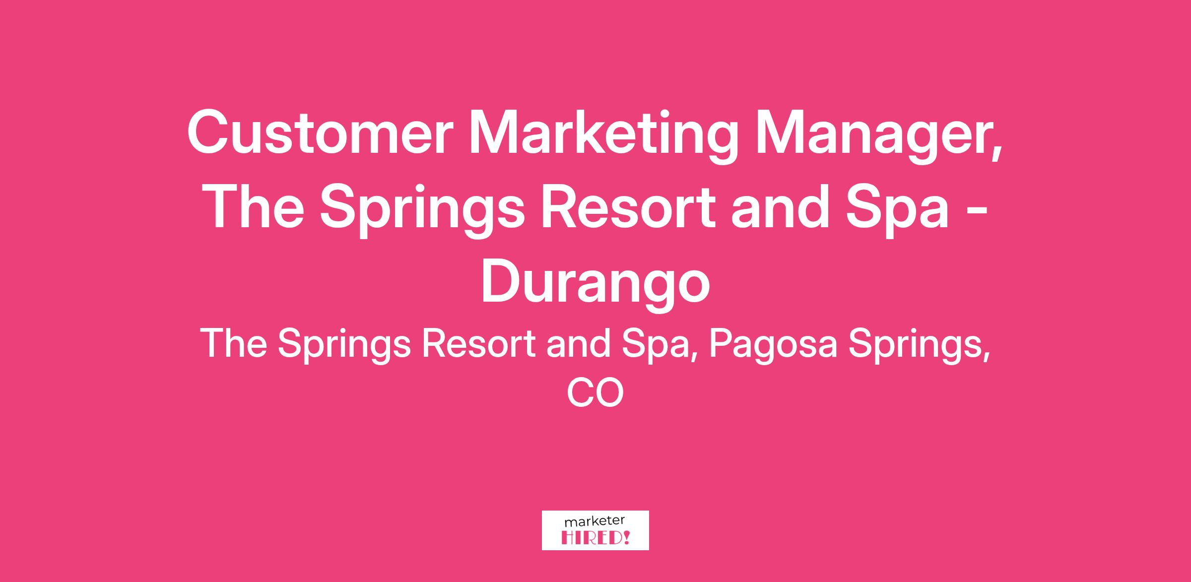Customer Marketing Manager, The Springs Resort and Spa - Durango