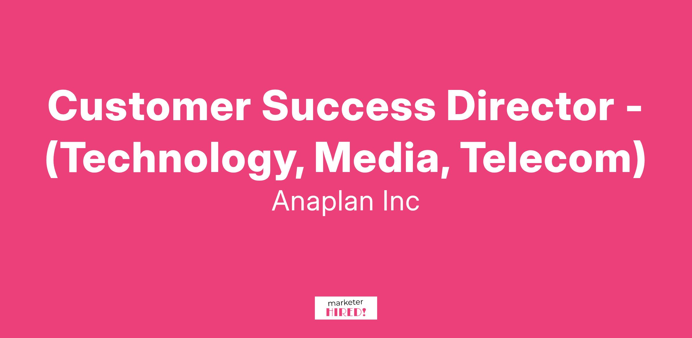 At Anaplan, we are a team of innovators who are focused on optimizing business decision-making through our leading scenario planning and analysis platform so our customers can outpace their competition and the market.What unites Anaplanners across teams and geographies is our collective commitment to our customers’ success and to our Winning Culture.Our customers rank among the who’s who in the Fortune 50. Coca-Cola, LinkedIn, Adobe, LVMH and Bayer are just a few of the 2,400+ global companies that rely on our best-in-class platform.Our Winning Culture is the engine that drives our teams of innovators. We champion diversity of thought and ideas, we behave like leaders regardless of title, we are committed to achieving ambitious goals and we have fun celebrating our wins.Supported by operating principles of being strategy-led, values-based and disciplined in execution, you’ll be inspired, connected, developed and rewarded here. Everything that makes you unique is welcome; join us and be your best self!CUSTOMER SUCCESS DIRECTOR – Technology, Media & TelecomAnaplan is looking for a highly driven and dynamic