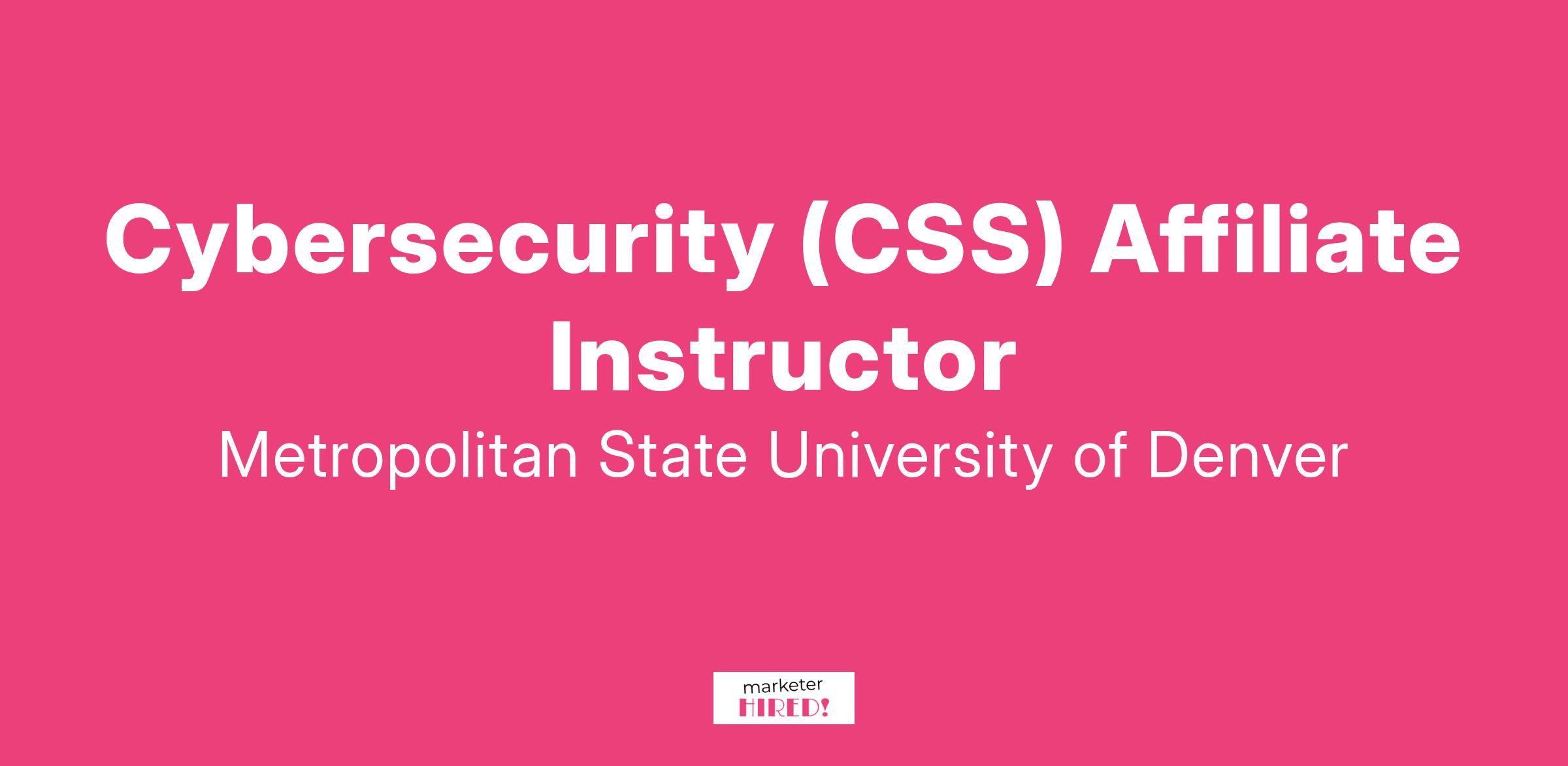 The Department of Computer Sciences Cybersecurity Bachelor's Program at Metropolitan State University of Denver (MSU Denver) invites applications for part-time affiliate faculty teaching positions to deliver innovative and industry-relevant cybersecurity education.