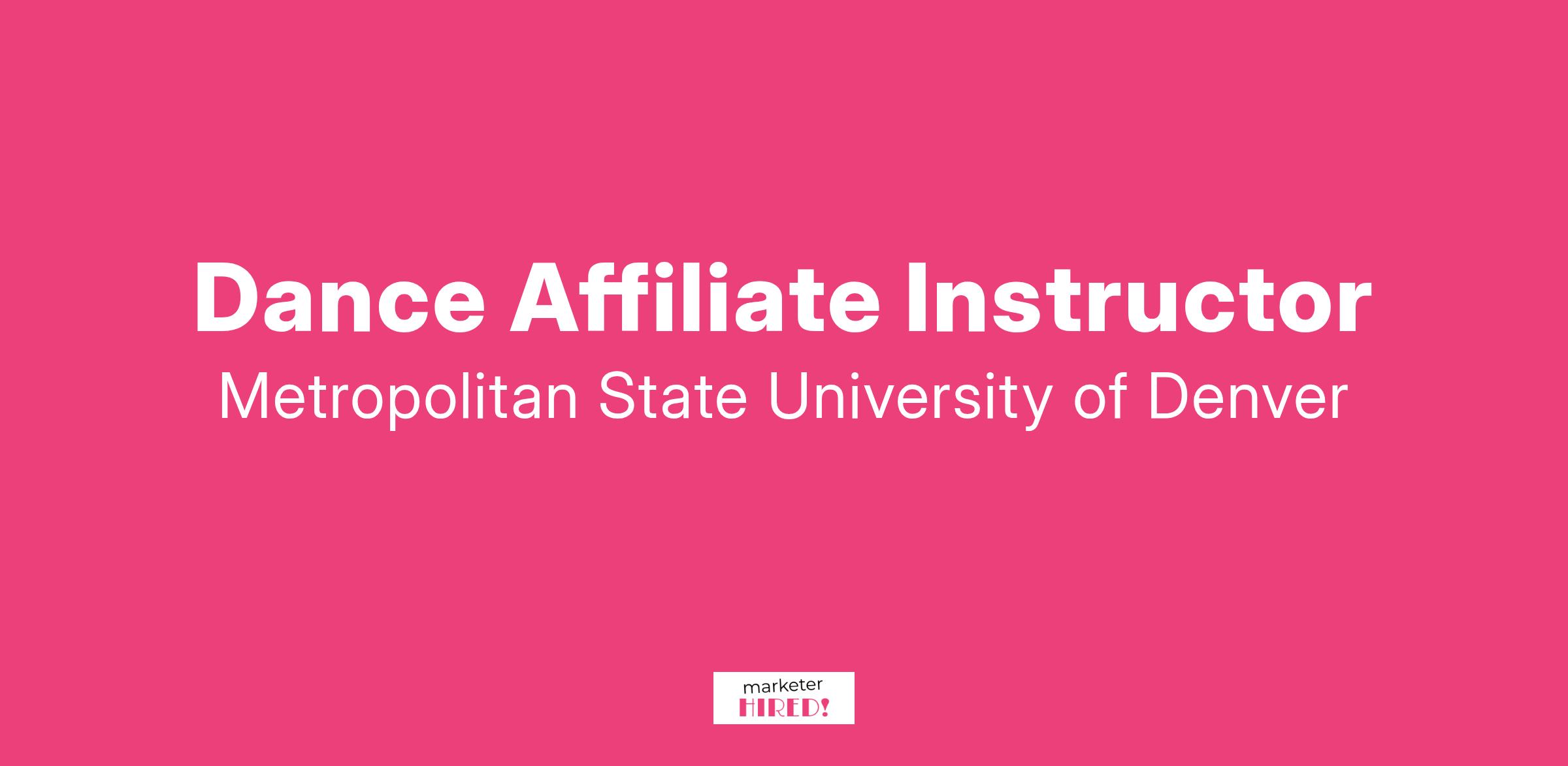 The Department of Theatre and Dance at Metropolitan State University of Denver (MSU Denver) invites applications for part-time affiliate faculty teaching positions. This listing is for potential future affiliate faculty needs for the Dance Program.