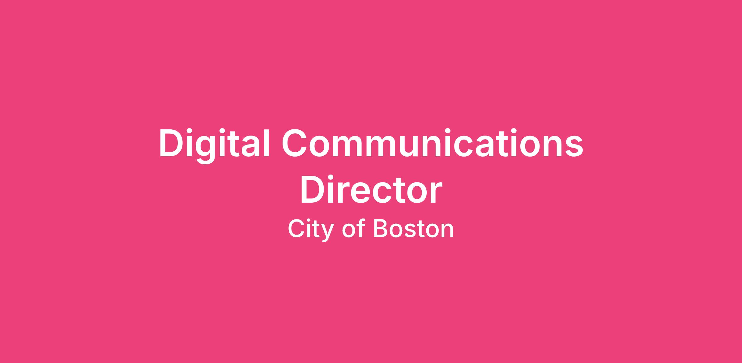 The Mayor's Office is looking for an experienced, innovative, and thoughtful Digital Communications Director to shape the brand and voice of Mayor Michelle Wu and lead the Mayor's Digital Team. The Digital Communications Director will drive the strategy and production of all digital communications, including social media, online engagement, video, branding, and design. As a senior leader on the communications team, the Director is responsible for working across the Mayor's Office and City departments to create, develop, and manage digital communications aligned with Mayor Wu's priorities and the City of Boston's values. The ideal candidate must work effectively and efficiently alongside a diverse team of municipal leaders to execute a successful, engaging, and integrated digital communications effort.