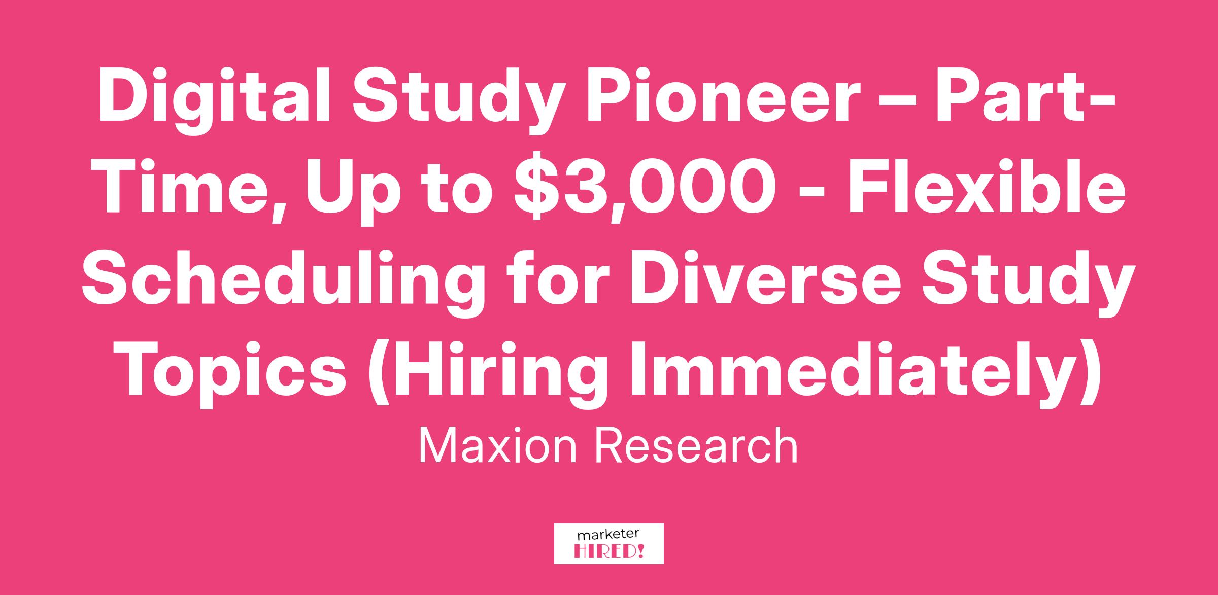 Digital Study Pioneer – Part-Time, Up to $3,000 - Flexible Scheduling for Diverse Study Topics (Hiring Immediately)