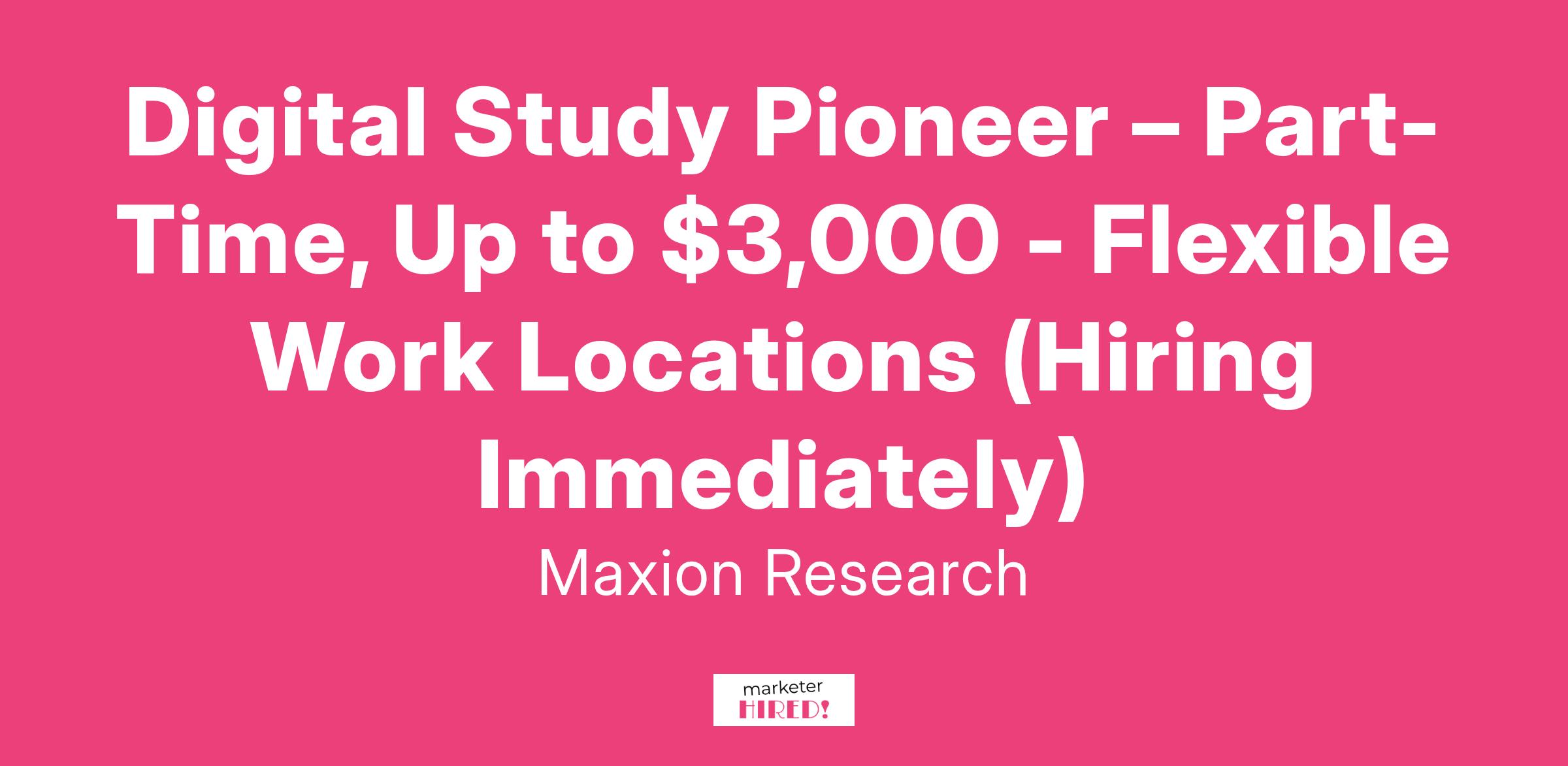 Digital Study Pioneer – Part-Time, Up to $3,000 - Flexible Work Locations (Hiring Immediately)