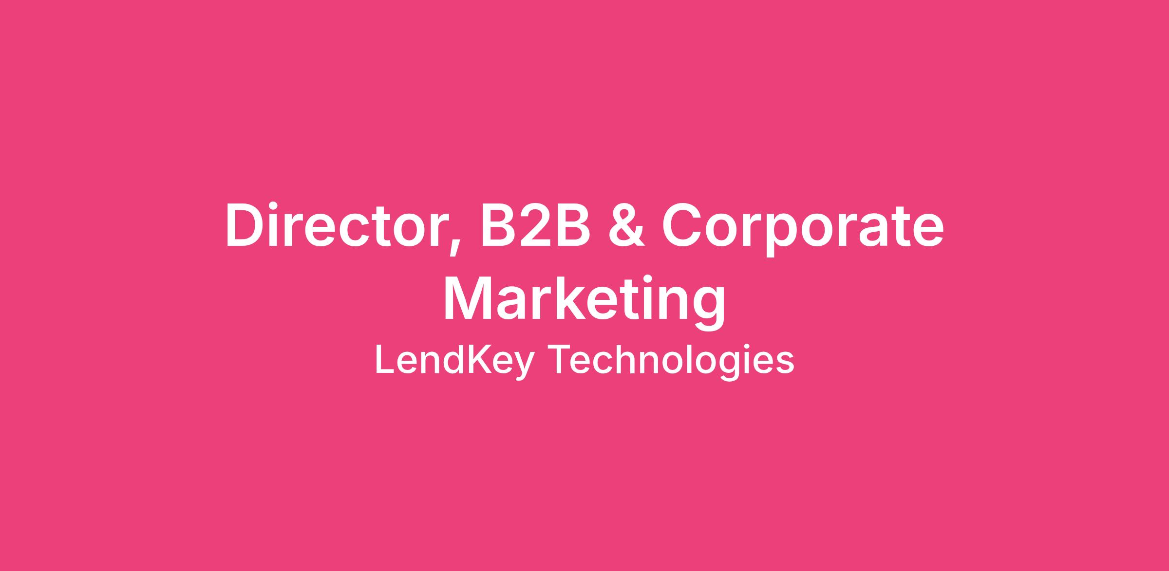 We are seeking a strategic, execution-oriented Director of B2B & Corporate Marketing to lead all marketing efforts focused on acquiring and expanding credit union and bank partnerships while elevating LendKey’s overall brand presence and authority in the financial services ecosystem.