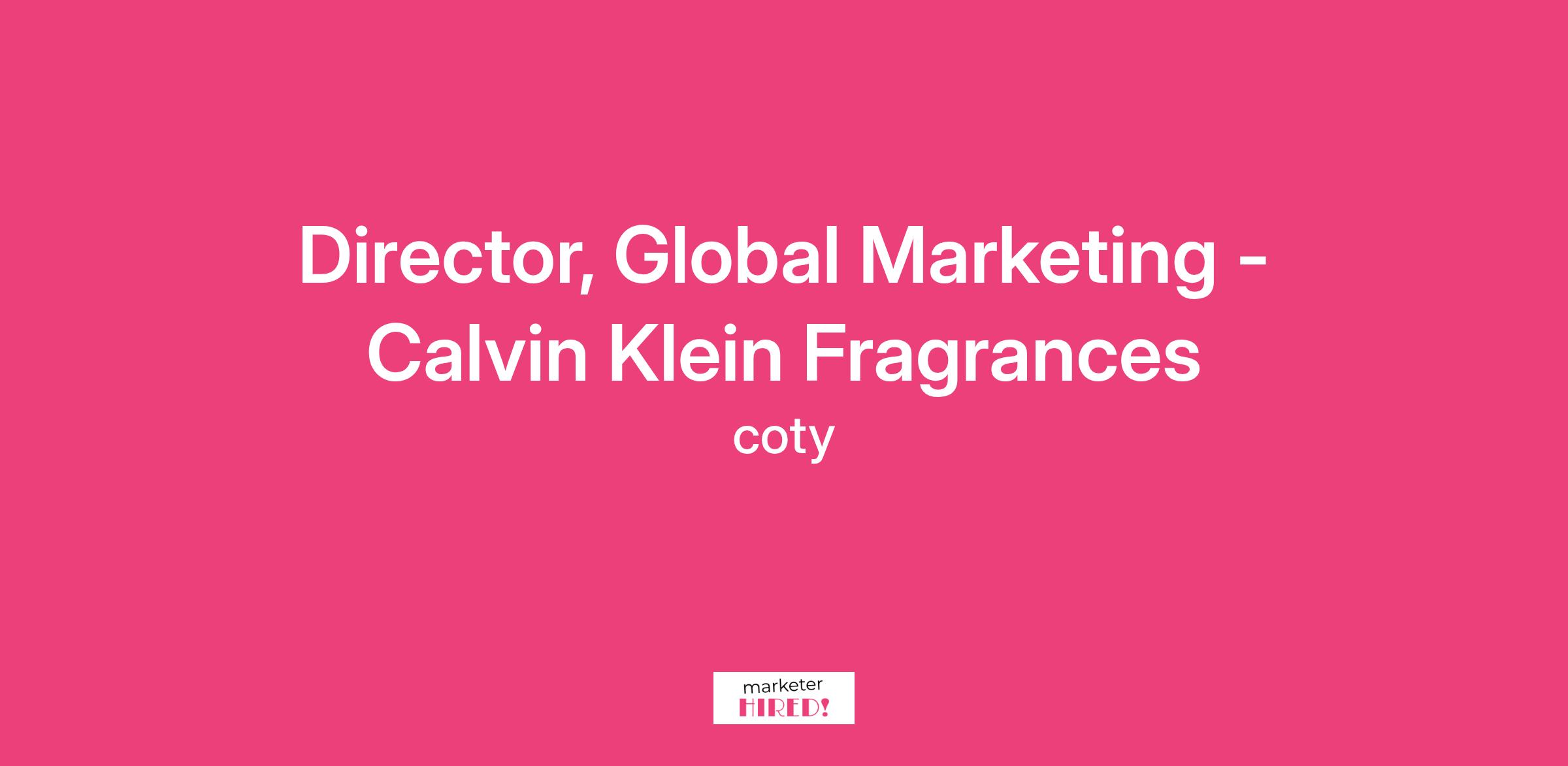 Director, Global Marketing - Calvin Klein Fragrances