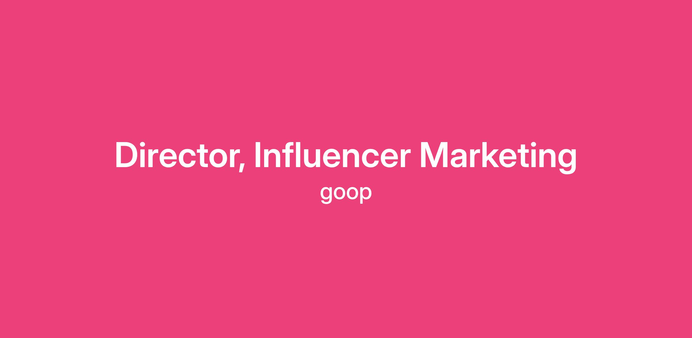 We’re seeking an experienced Director to lead our central influencer marketing team and own goop’s creator strategy. The position is based in our Santa Monica headquarters.