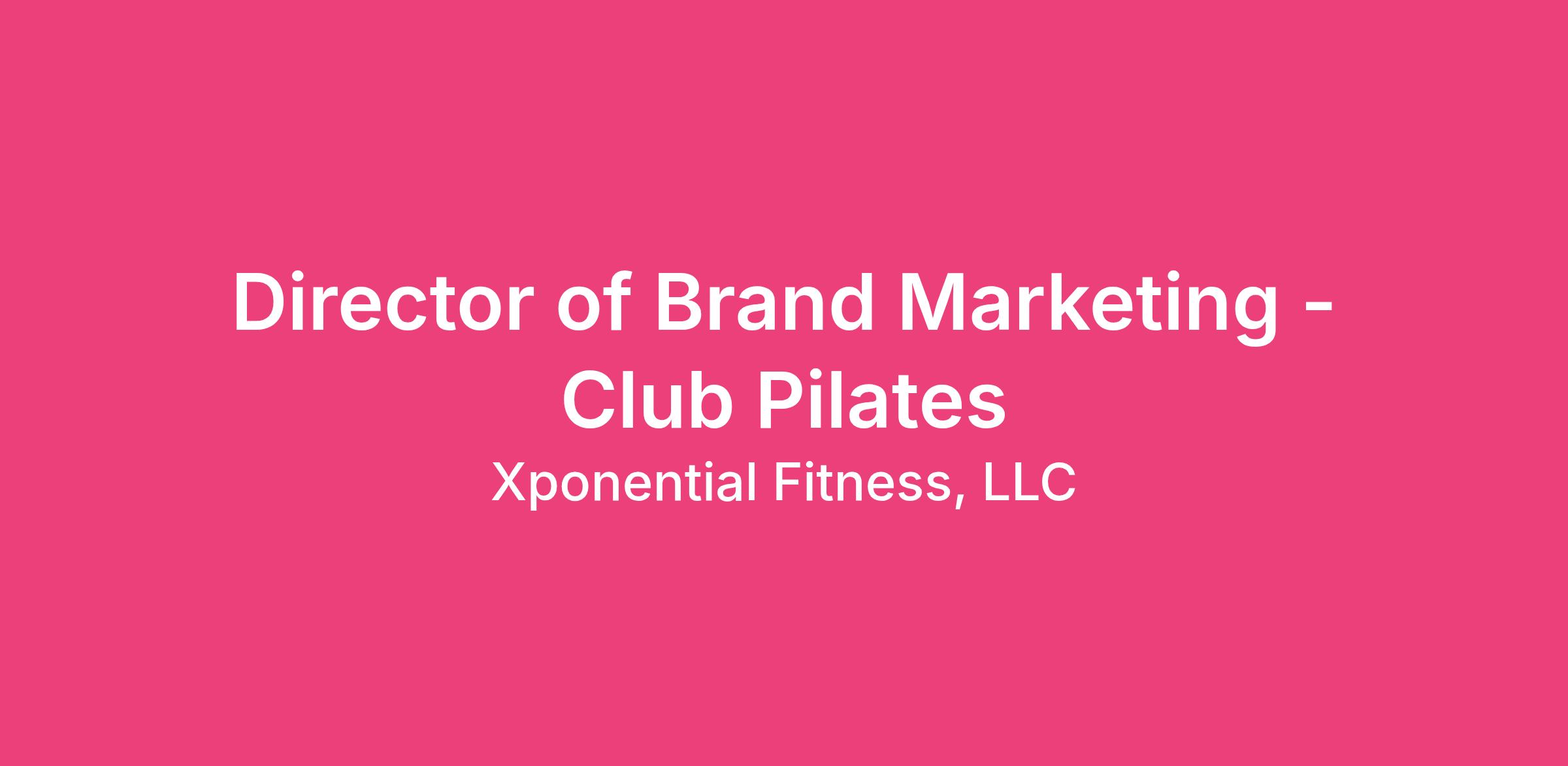 Reports To: Vice President of Brand Franchise Marketing - Club Pilates
