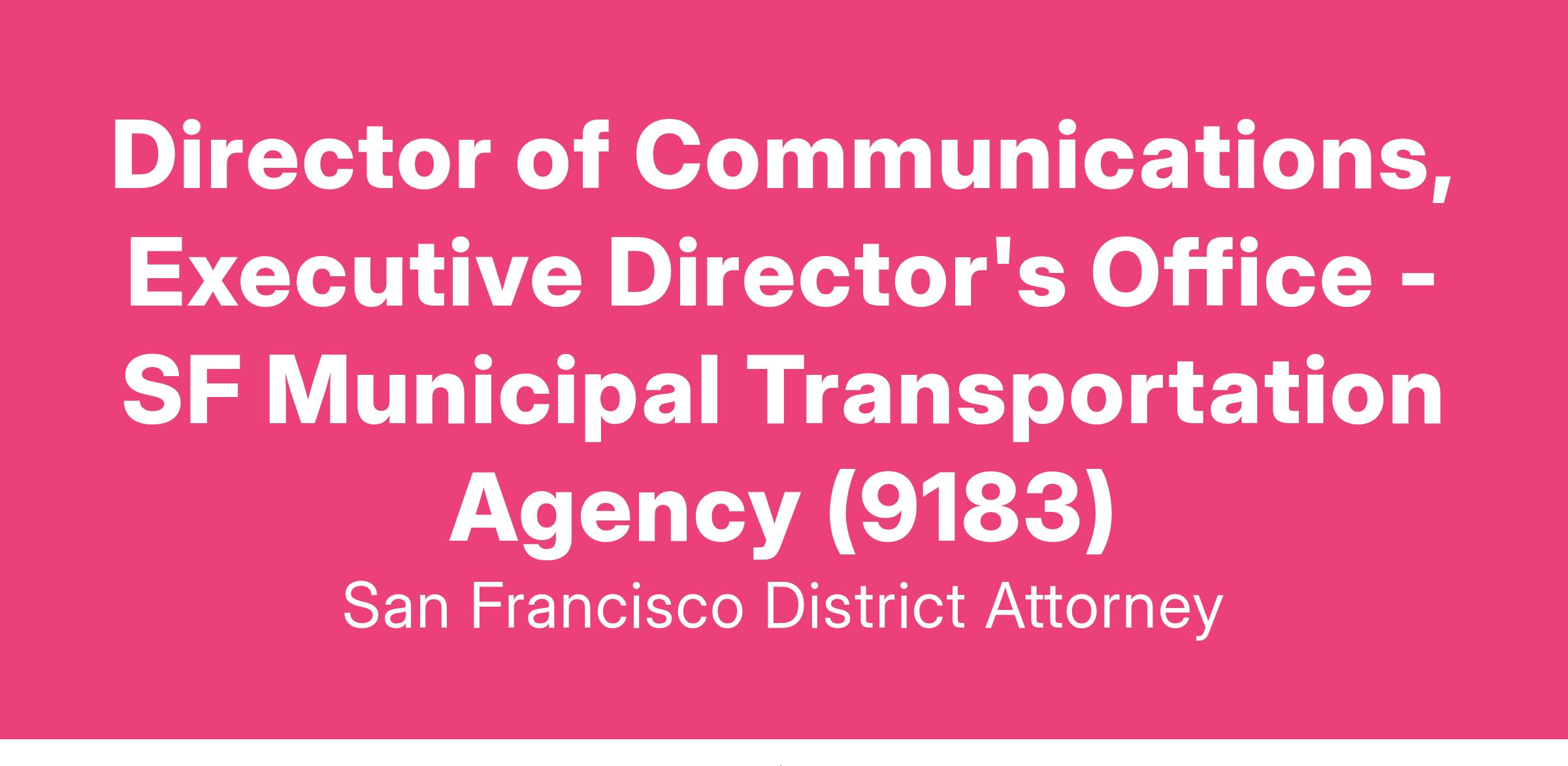 Director of Communications, Executive Director's Office - SF Municipal Transportation Agency (9183)