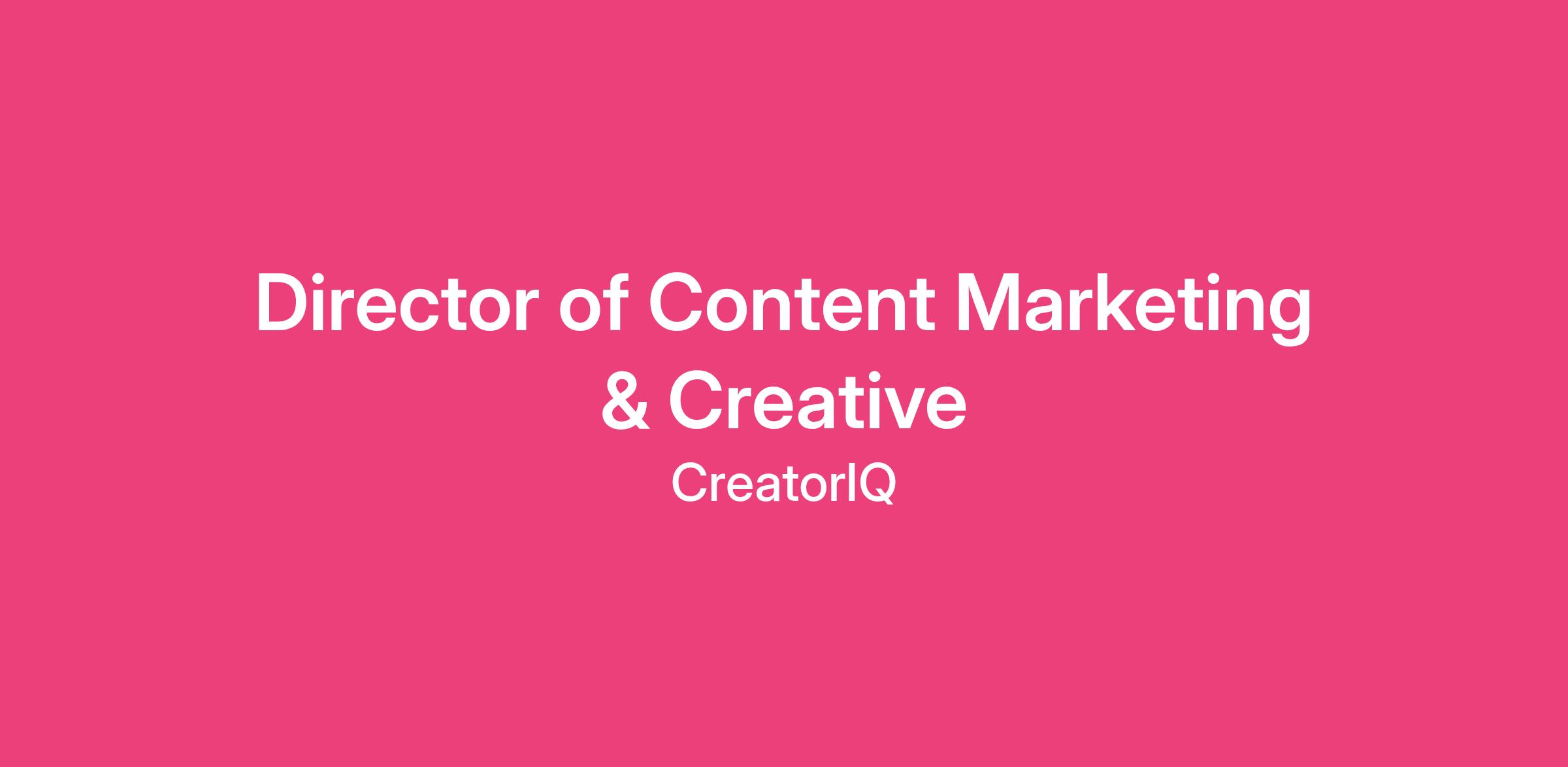 We’re hiring a Director of Content Marketing & Creative to build and scale the content and creative engine that powers CreatorIQ’s brand across the full funnel. This role owns how and where CreatorIQ shows up organically — across content, creative, and our podcast, blog, and social channels — and is responsible for turning brand storytelling into a measurable growth lever that drives awareness, discovery, and consideration.