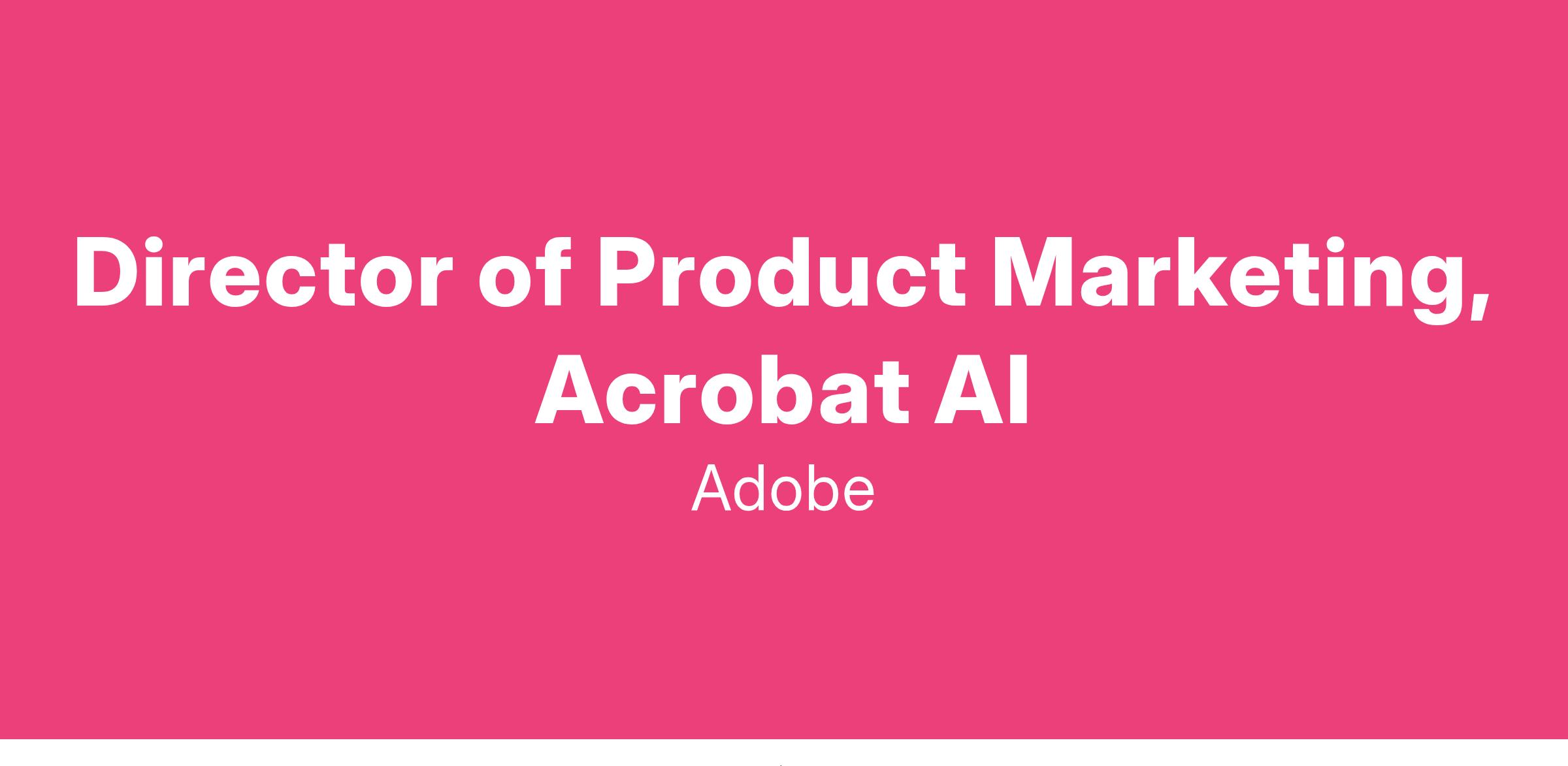 Our team is passionate about transforming the world of documents and productivity. We are looking for a Product Marketing director for Adobe Acrobat that is focused on feature marketing and how we bring to market new Gen AI capabilities and innovations. This role will be accountable for driving business results in collaboration with multiple cross-functional teams. This is a highly visible position that requires clear critical thinking and ability to implement all the way down to the nitty gritty details. The ideal candidate will be passionate about Gen AI driven ideation, exude ownership of the business and be able to demonstrate the ability to influence teams in Product, Marketing, GTM, Communications and more in a matrixed environment.