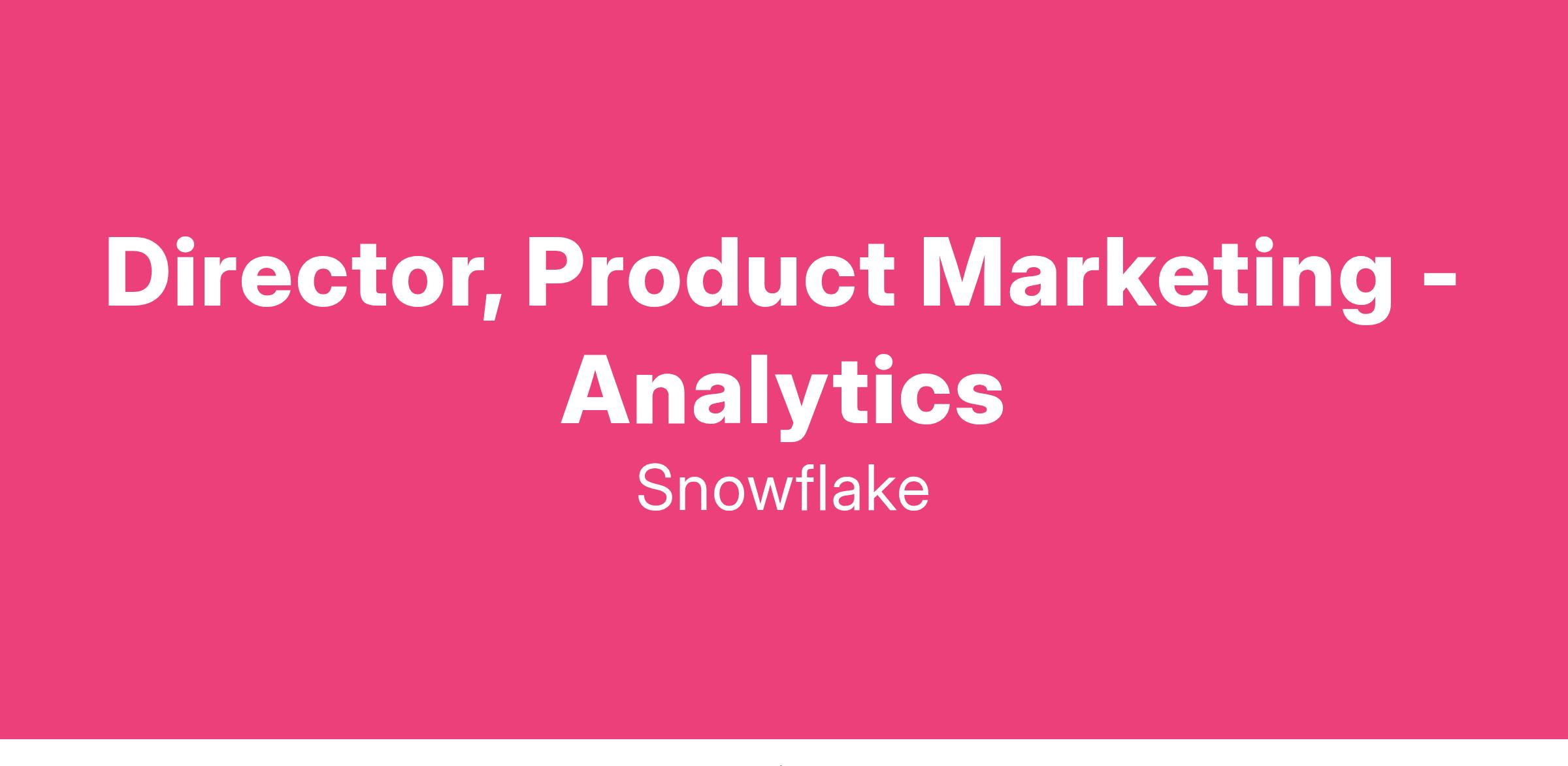 We’re searching for a highly-talented and driven individual to join our team as a Director of Product Marketing. In this role, you will be responsible for leading a team focused on one of our most critical go-to-market motions - Analytics. This is a high-impact role that will work across Snowflake sales, product, partners, and marketing teams to develop and execute initiatives to drive adoption and revenue.