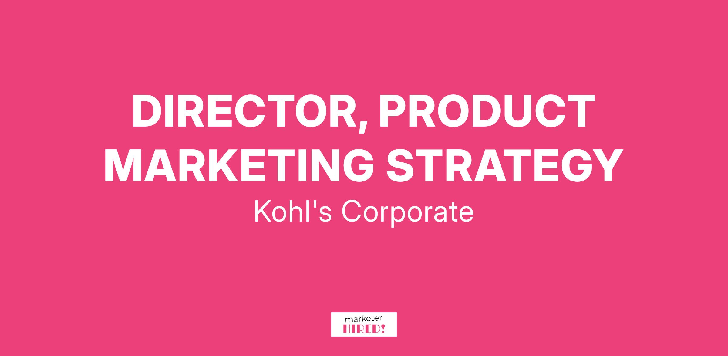 As the Director, Product Marketing Strategy, you will be a leader that drives Kohlβs success by defining product marketing strategies that increase customer relevance and deepen retailer connection. Relocation assistance will be provided.