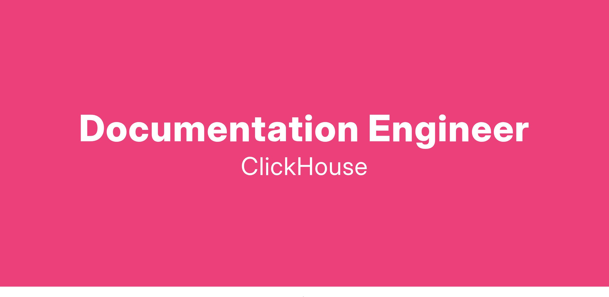 We’re hiring a Documentation Engineer to join our Product team at ClickHouse! Our documentation serves as the initial point of contact for developers learning about ClickHouse. Given the fiercely competitive landscape of real-time analytical databases and their alternatives, it is imperative that our ClickHouse documentation sets the standard for excellence. We are actively seeking a talented technical writer, ideally with an engineering background, who is deeply passionate about crafting exceptional developer experiences and producing top-tier documentation.