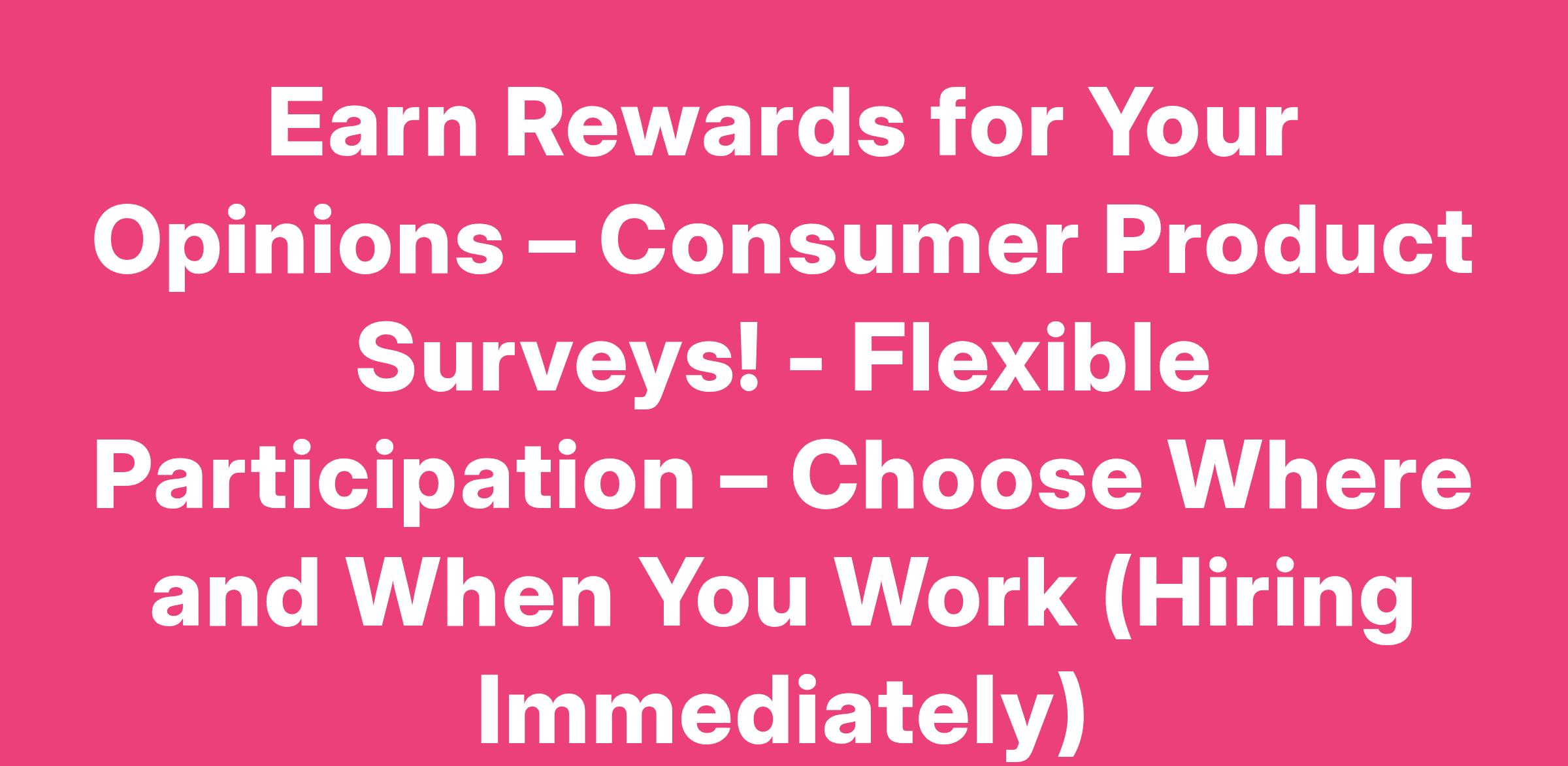Earn Rewards for Your Opinions – Consumer Product Surveys! - Flexible Participation – Choose Where and When You Work (Hiring Immediately)