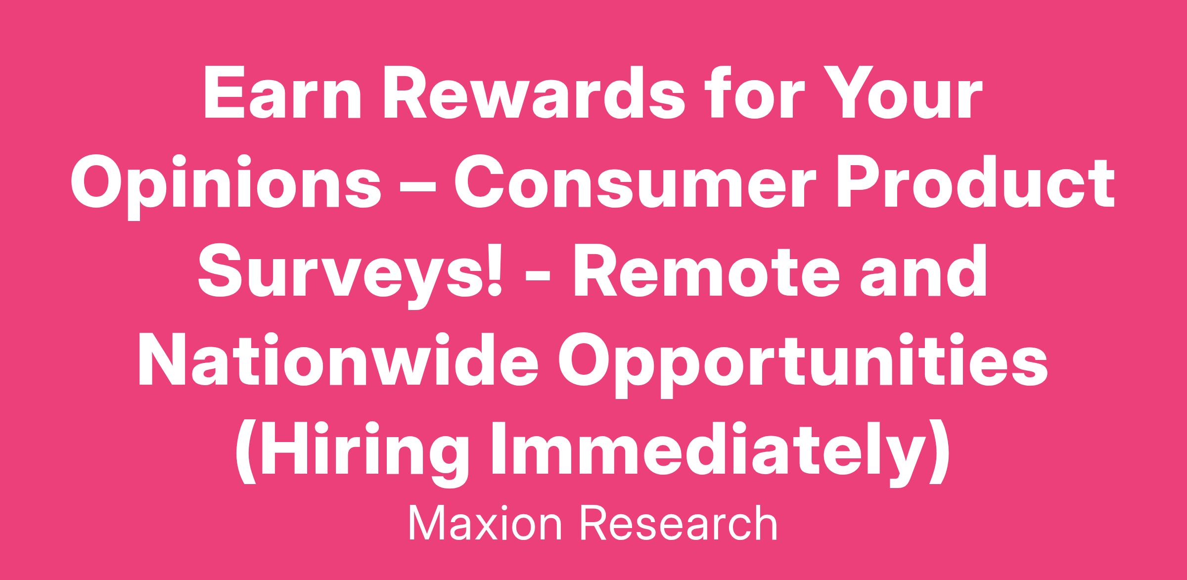 Earn Rewards for Your Opinions – Consumer Product Surveys! - Remote and Nationwide Opportunities (Hiring Immediately)