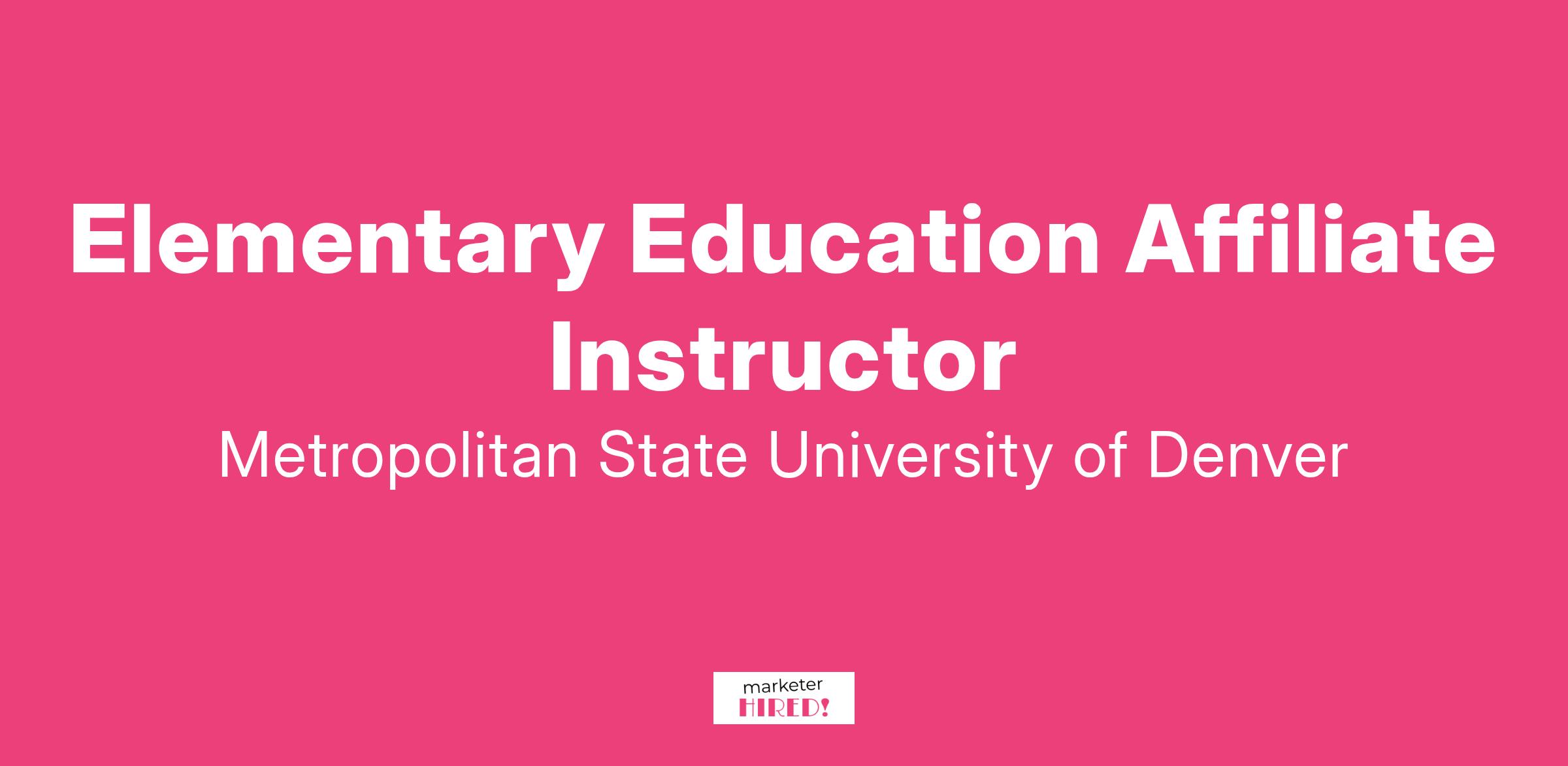 The Department of Elementary Education & Literacy at Metropolitan State University of Denver (MSU Denver) invites applications for part-time affiliate faculty teaching positions.