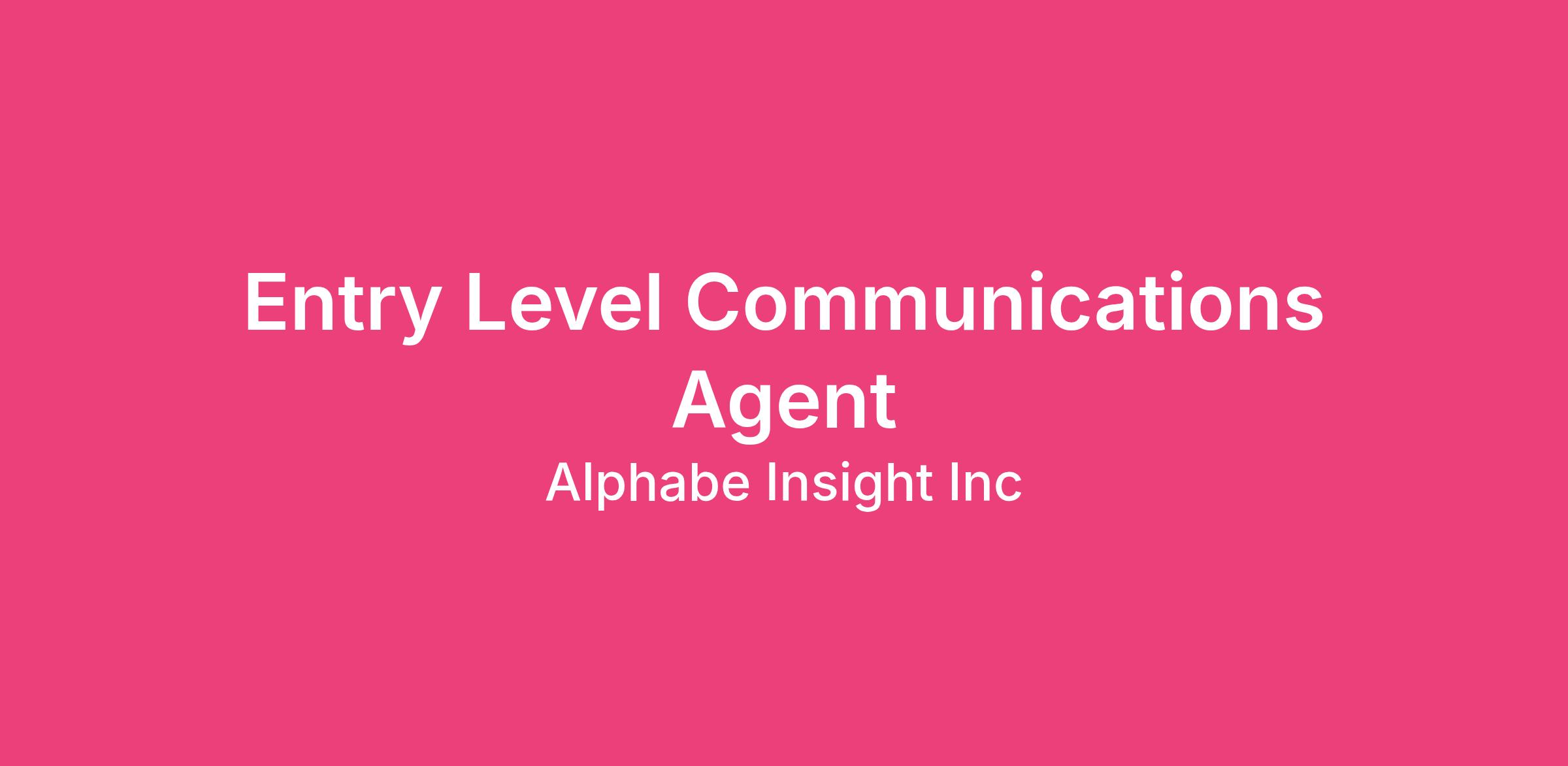 We are seeking a motivated and enthusiastic Entry Level Communications Agent to join our dynamic team. In this role, you will be responsible for supporting the organization’s communication efforts by effectively conveying information to various stakeholders. This position is ideal for individuals who have strong interpersonal and communication skills, a desire to grow in the communications field, and are eager to contribute to a collaborative work environment.