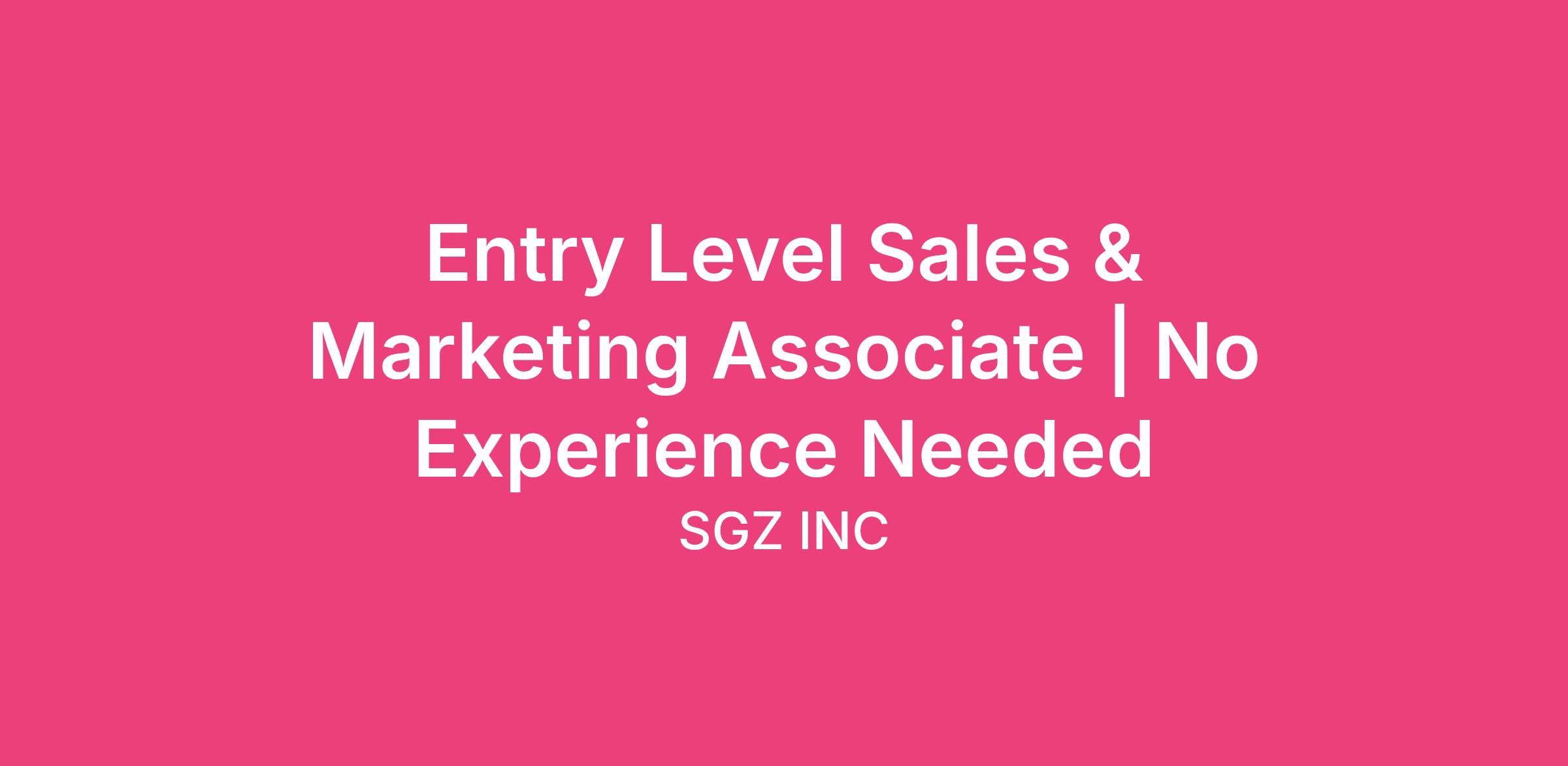 Entry Level Sales & Marketing Associate | No Experience Needed