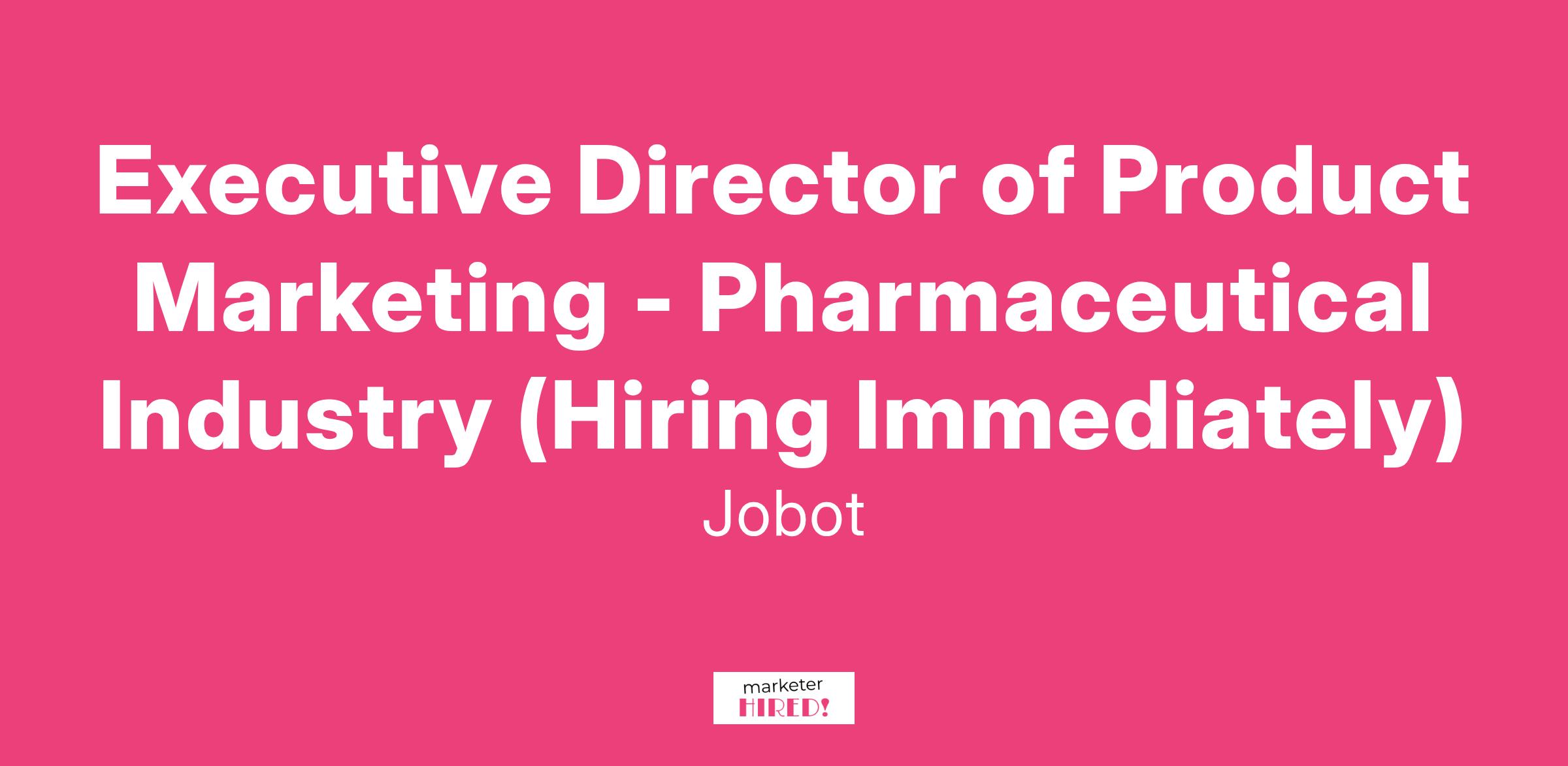 Executive Director of Product Marketing - Pharmaceutical Industry (Hiring Immediately)